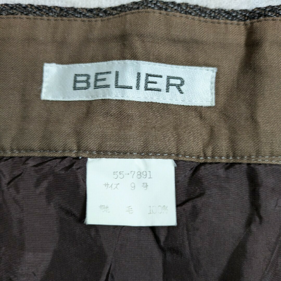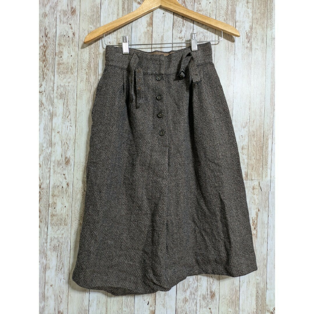 【BELIER】ボタンフライ☆ひざ丈フレアスカート☆Aライン☆ウール☆M☆ボトムス☆レディース☆グレー