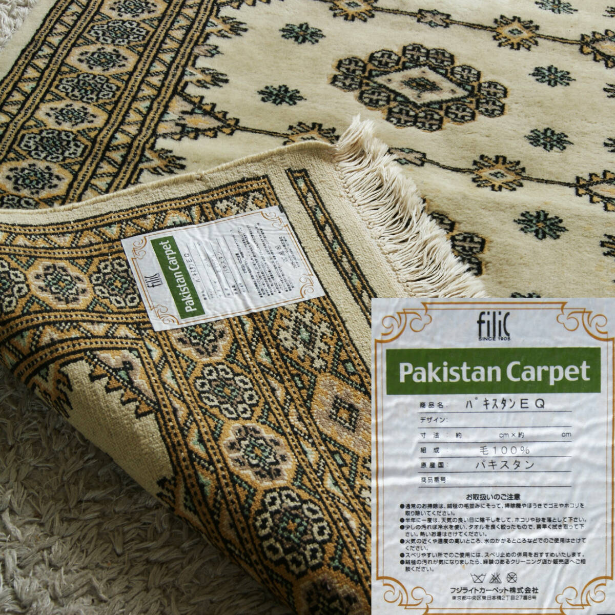 5968h2.5【Pakistan Carpet パキスタン EQ ウール100 玄関マット カーペット】filic since 1908 中古 アンティーク ヴィンテージ◎