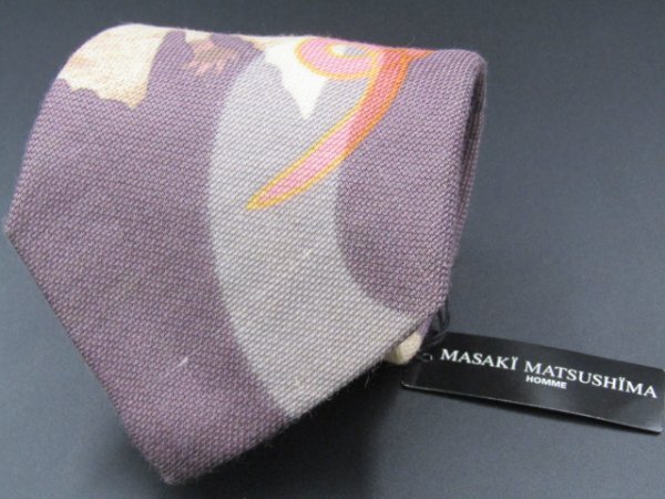 【マサキ マツシマ】 OD 026 マサキ マツシマ MASAKI MATSUSHIMA ネクタイ 紫系 アート アニマル プリント 未使用品