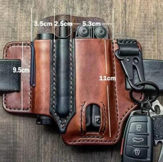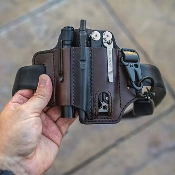 新入荷2色選択可マルチツールシースEDCポケットサバイバルツールバックベルトウエストバック  キャンプ収納  本革 アウトドア 茶色