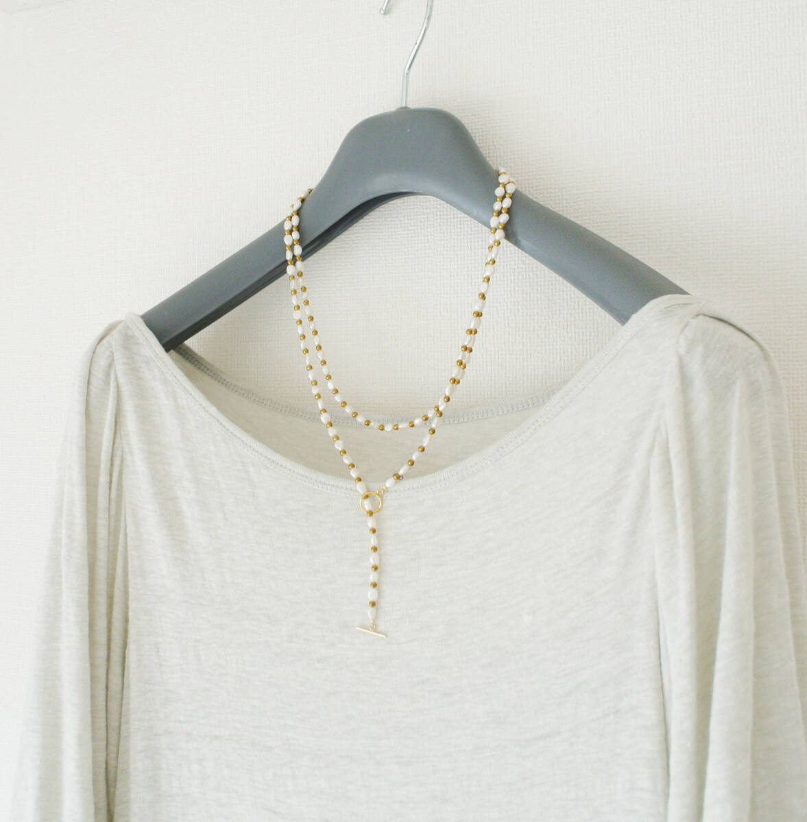 ロングの1連ネックレス、2連ネックレス、6連ブレスレットなどアレンジができます。