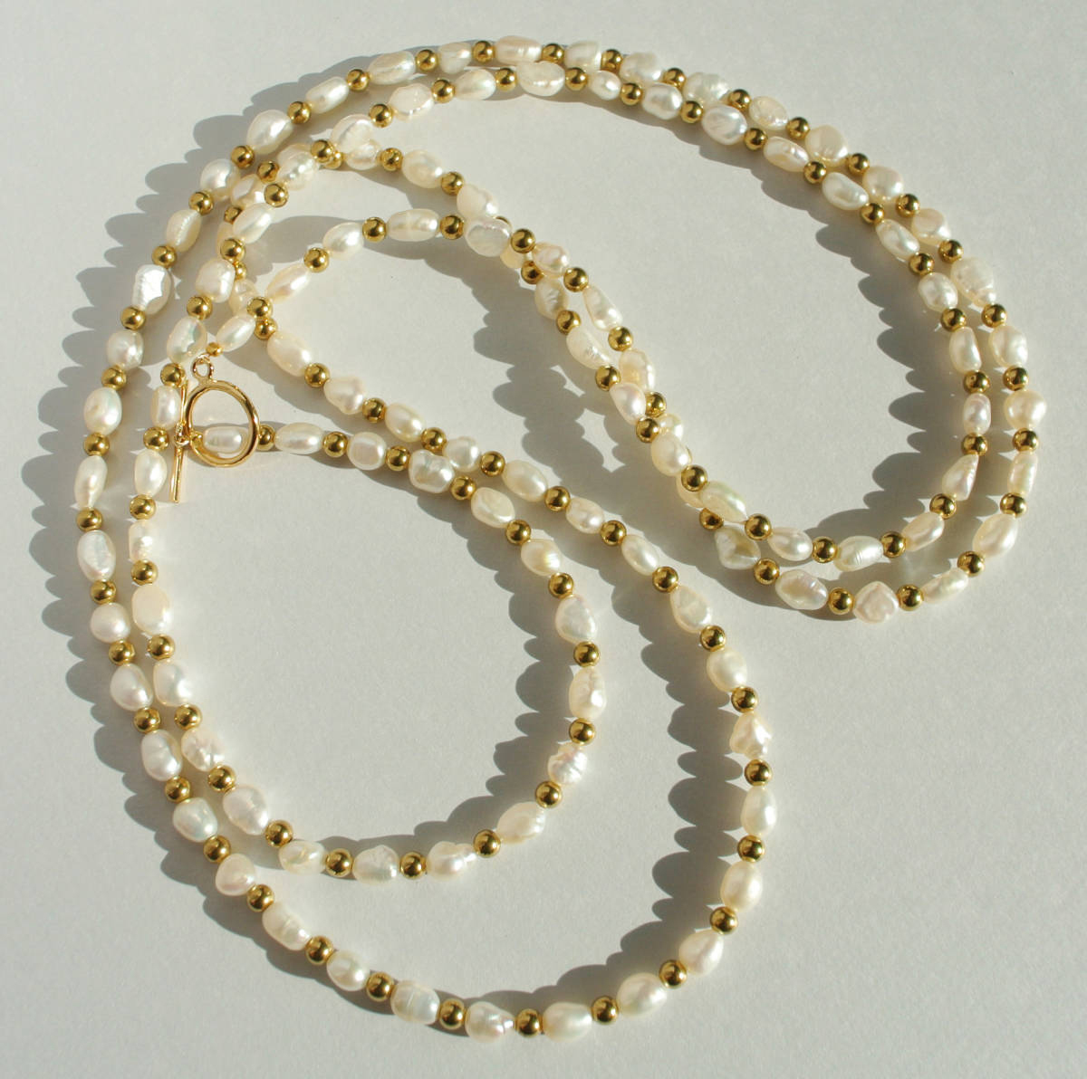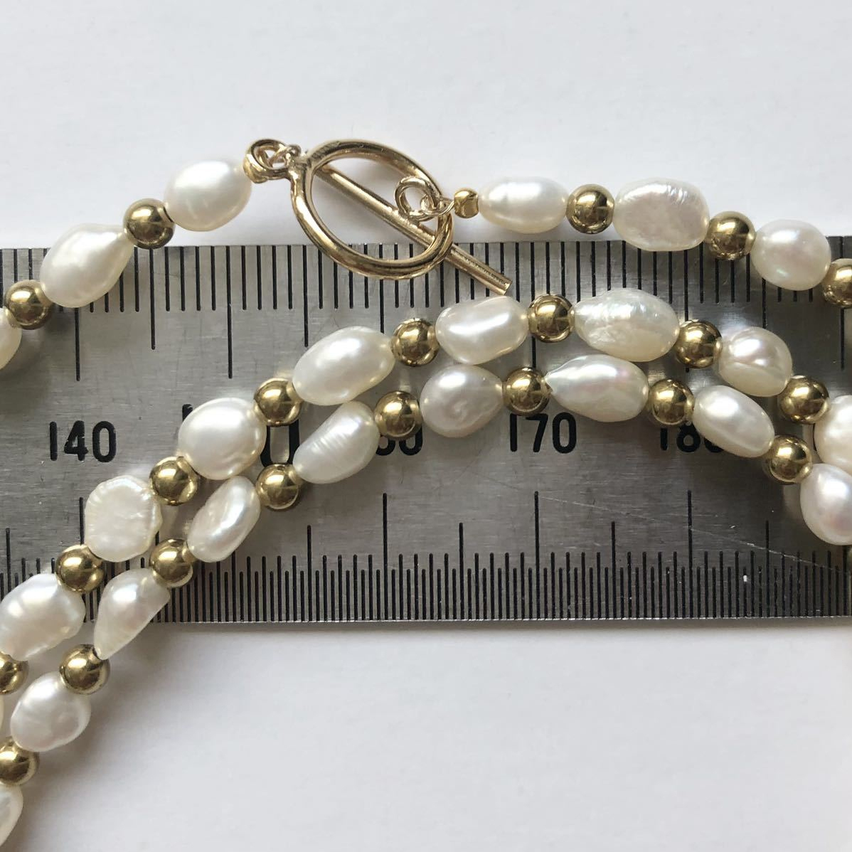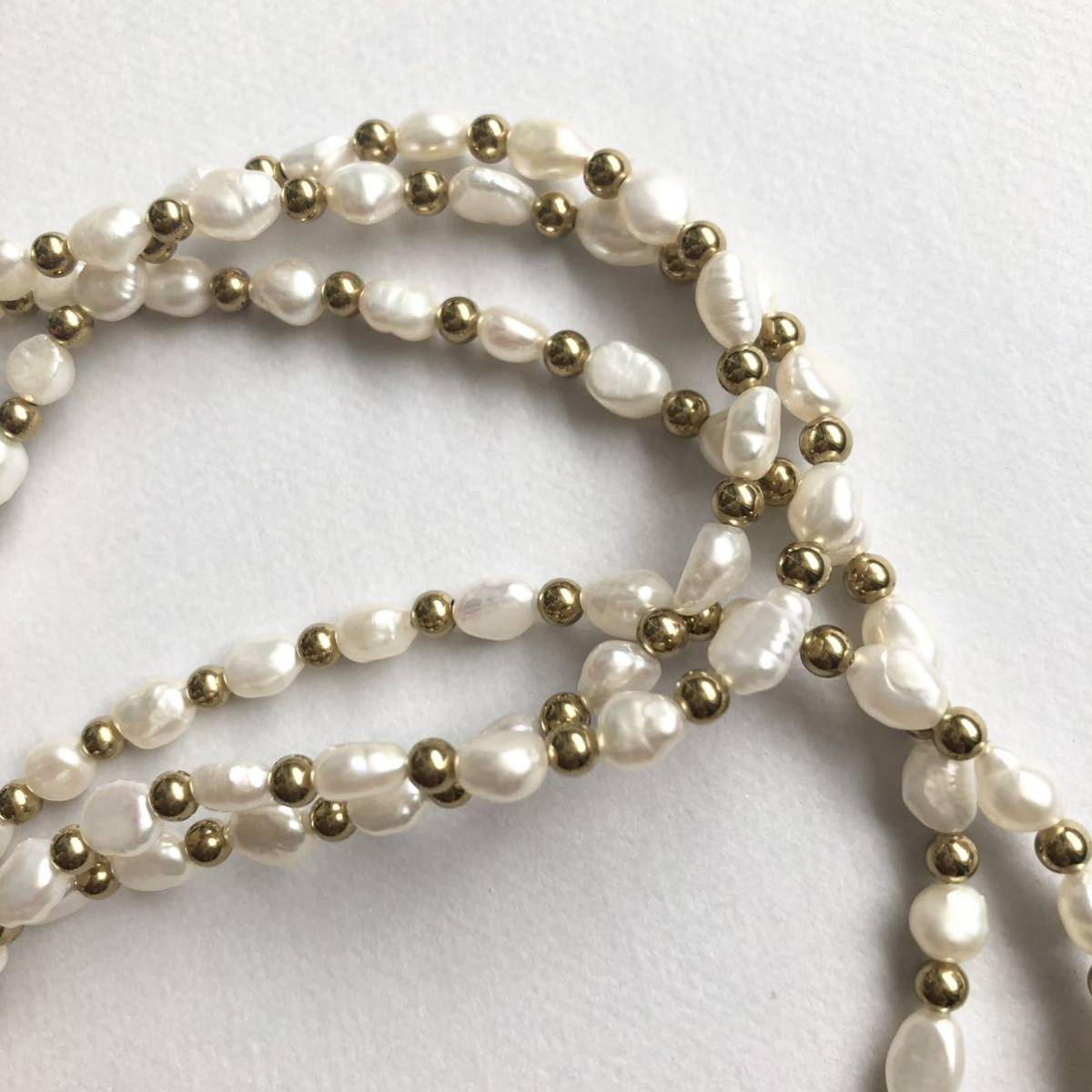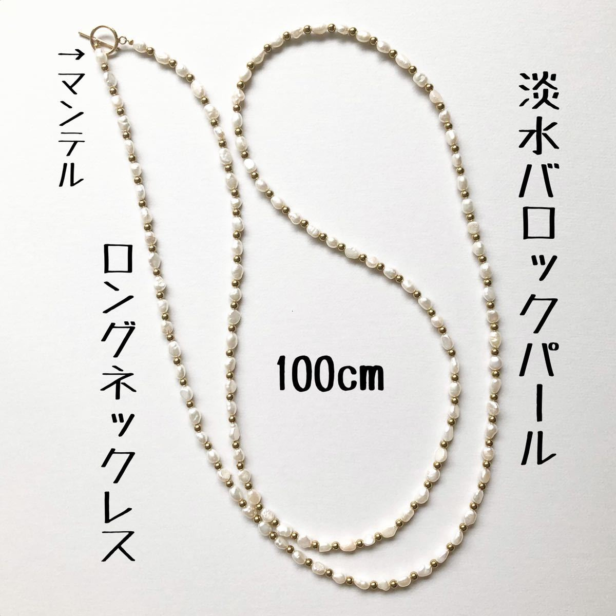 淡水バロックパール100cmロングネックレス 淡水パール&真鍮ビーズ 真珠 2連ネックレス 6連ブレスレット 淡水パール マンテル