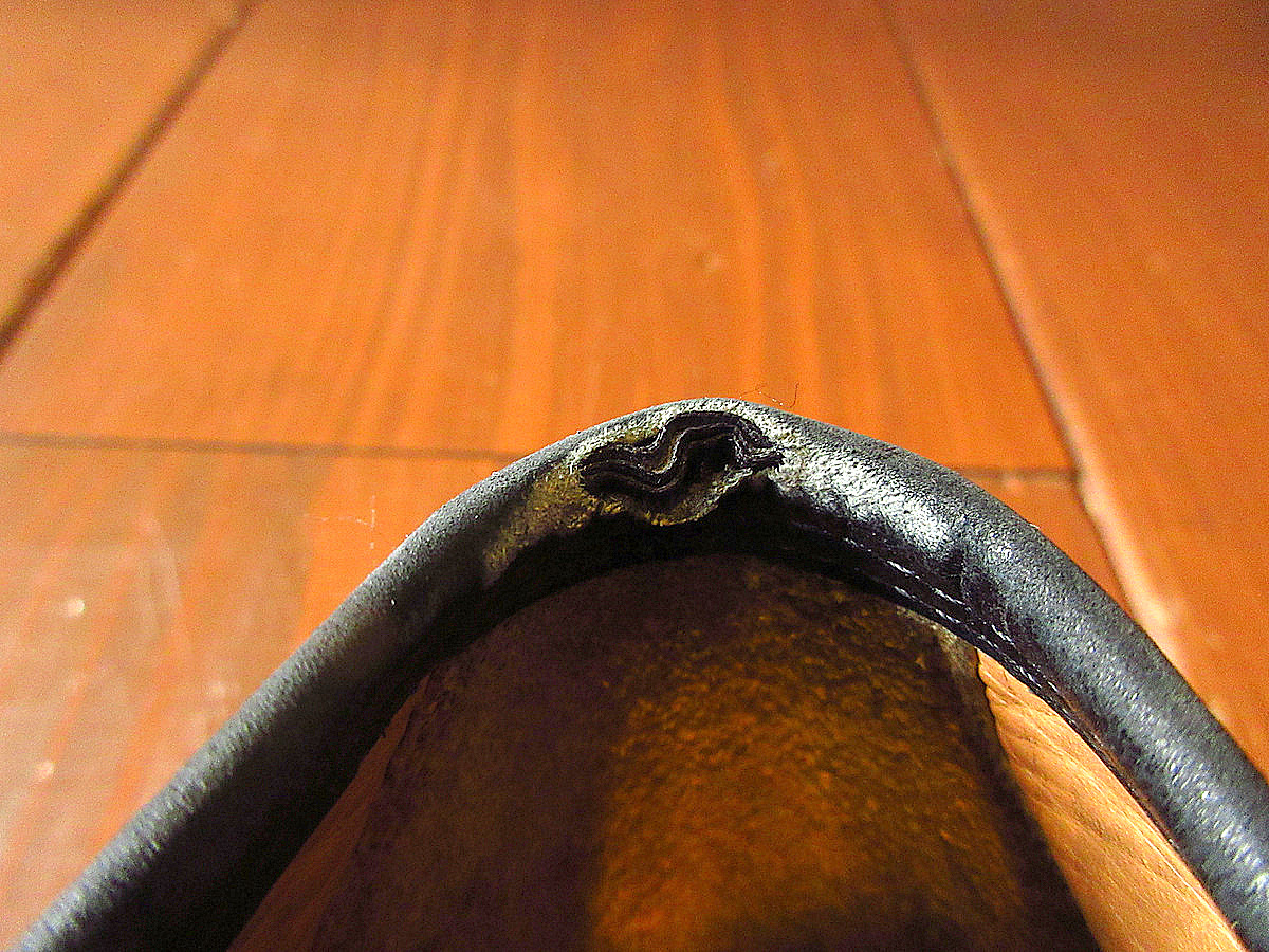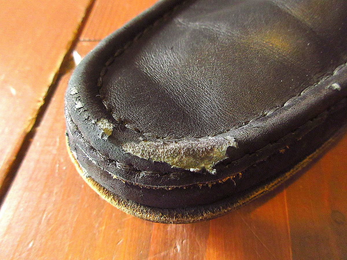 かかと内側とつま先に擦れによるダメージあり、ソールにすり減りあり、その他にも汚れや傷あり