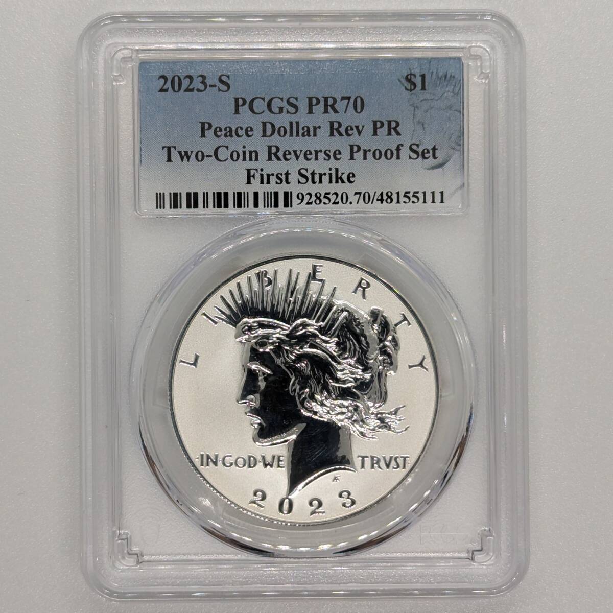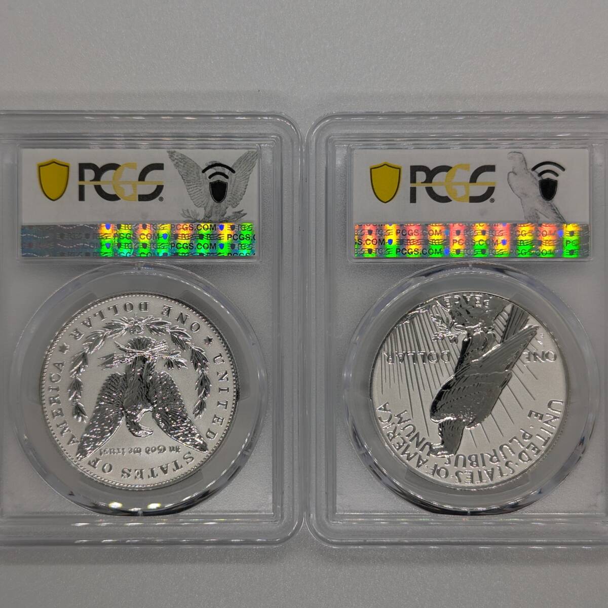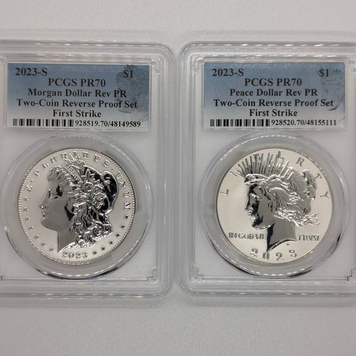 【2枚組!鑑定!ファーストストライク2枚組!リバースプルーフ!】2023年 モルガンダラー ピースダラー アメリカ 銀貨 PCGS PR70