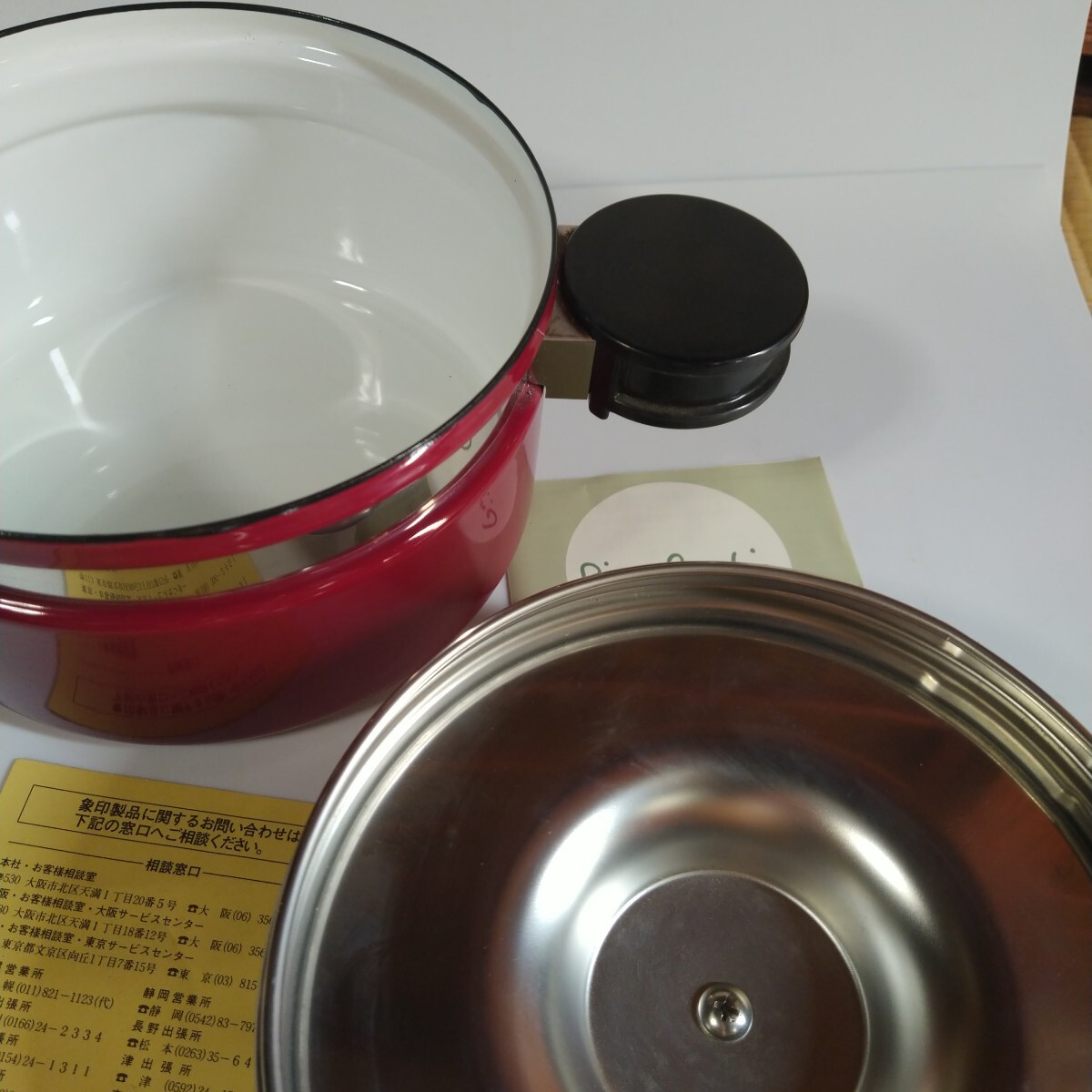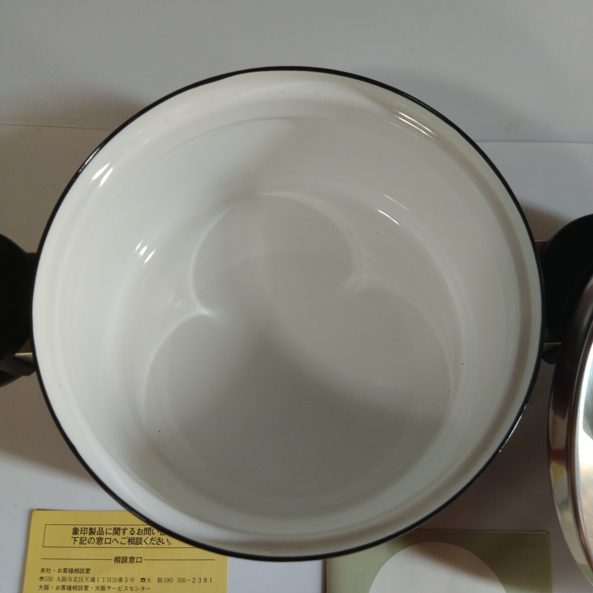 昭和レア!日本が景気がよい時代に象印がピエール・カルダンのブランドで販売していたホーローウェアシリーズの両手鍋です。直径18cm 在庫期間長いので写真確認をお願いします。専用の箱はありません。