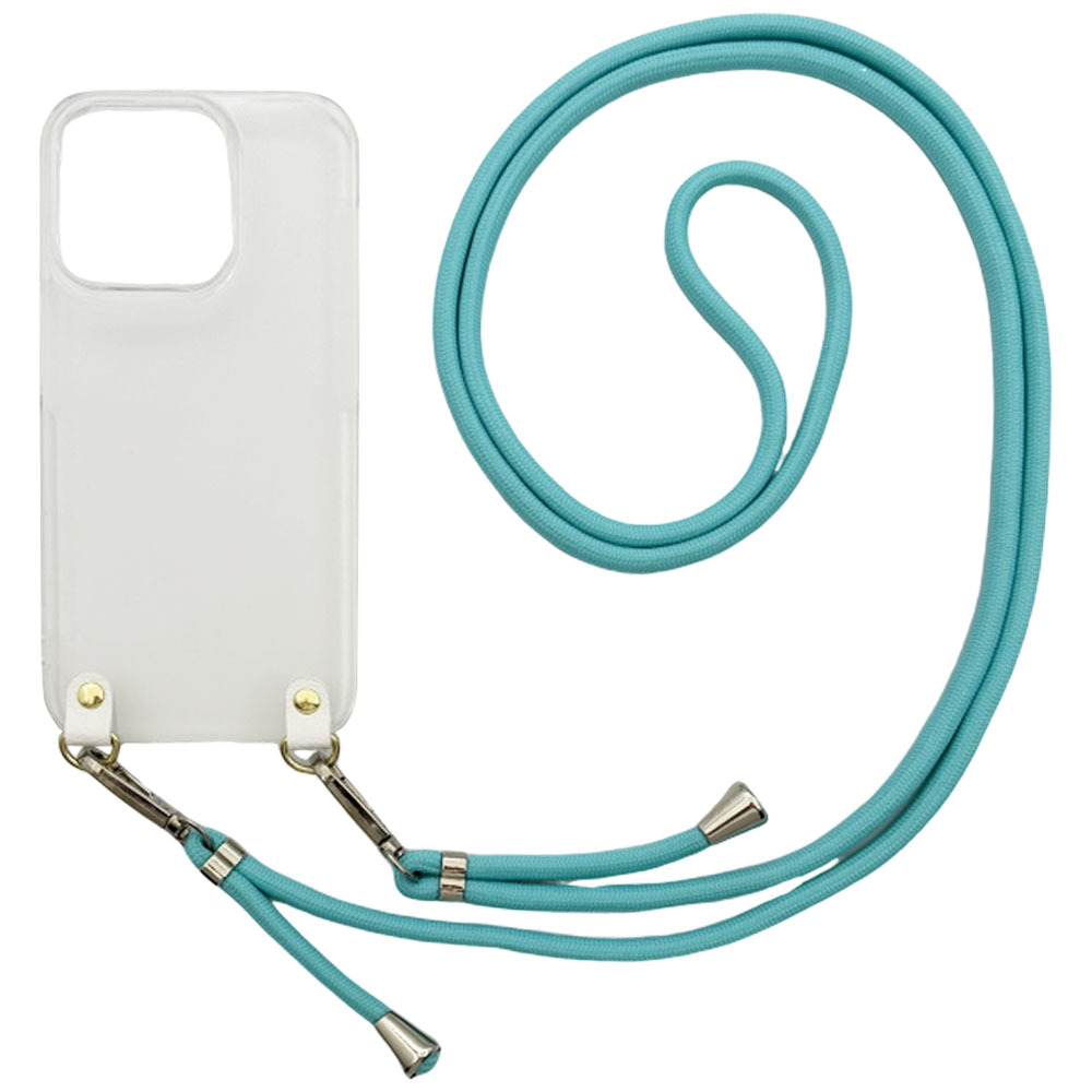 iPhone16(ミント)ストラップホルダー クリアケース ショルダー ひも 太め 肩掛け 斜めがけ