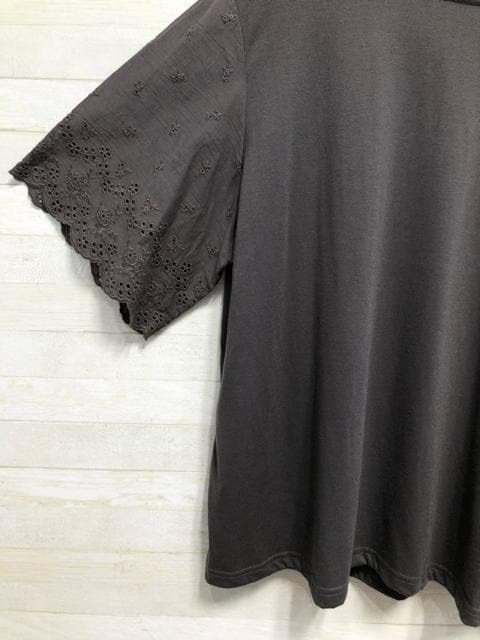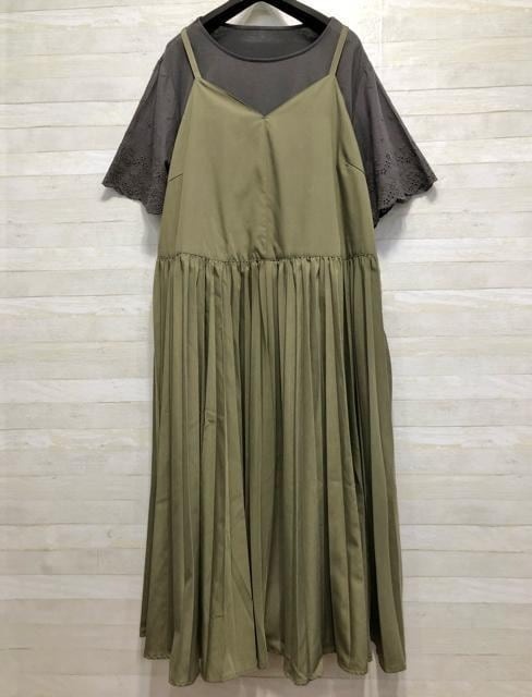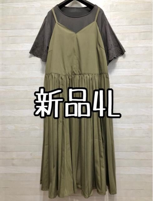 新品☆4L♪切替デザインフェミニン♪カットワーク袖トップス&ロングキャミワンピ☆f361