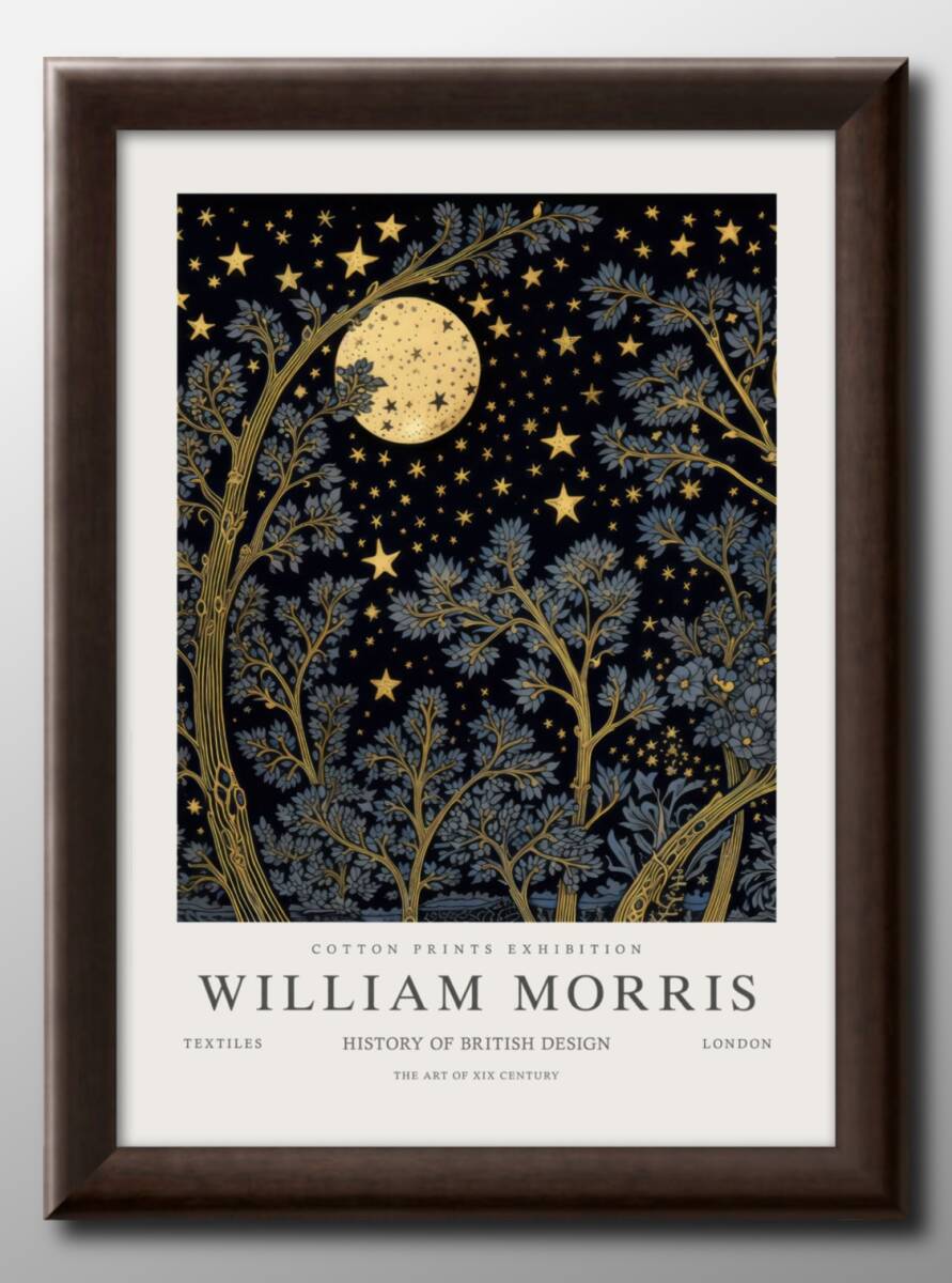 14845■送料無料!!アートポスター 絵画 A3サイズ『ウィリアム・モリス 月夜』イラスト 北欧 マット紙
