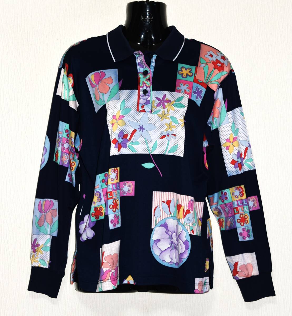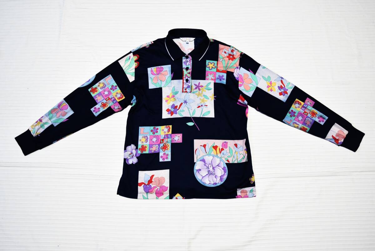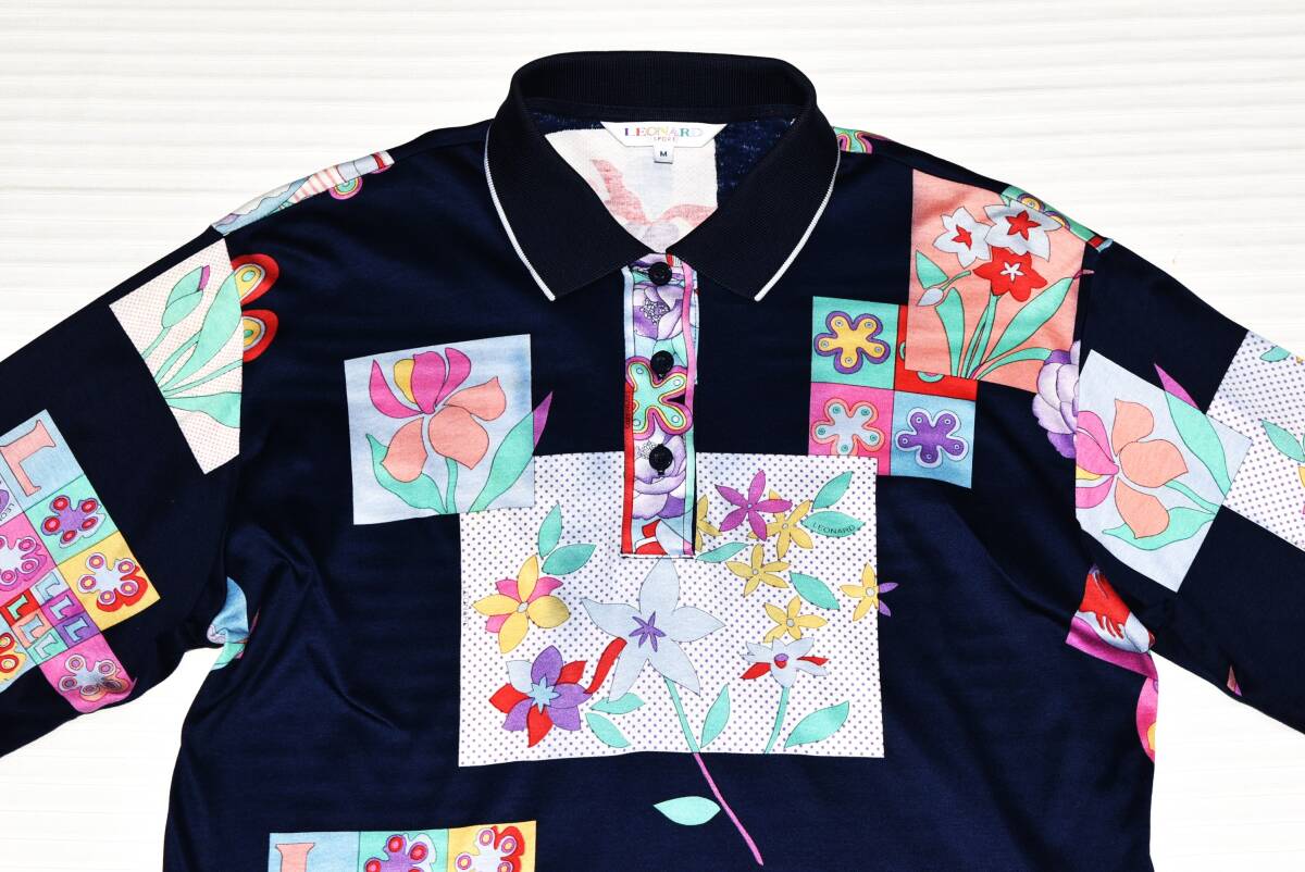 ★レオナールスポーツ★LEONARD SPORT★ コットン素材の着心地良い長袖ポロシャツ 世界で最も美しいプリント M