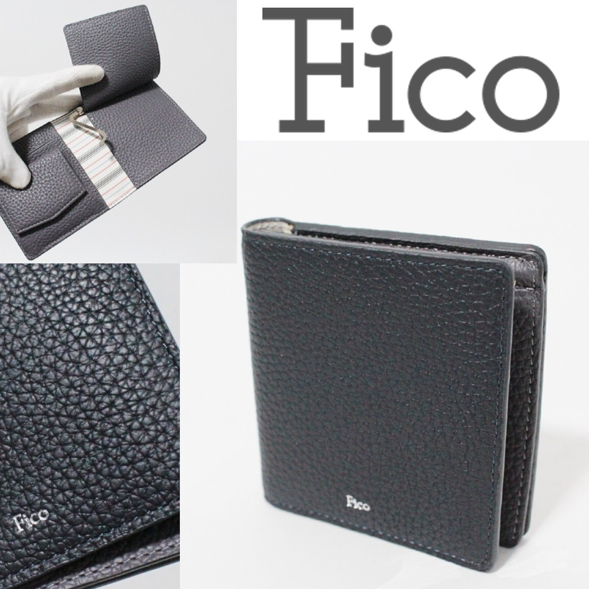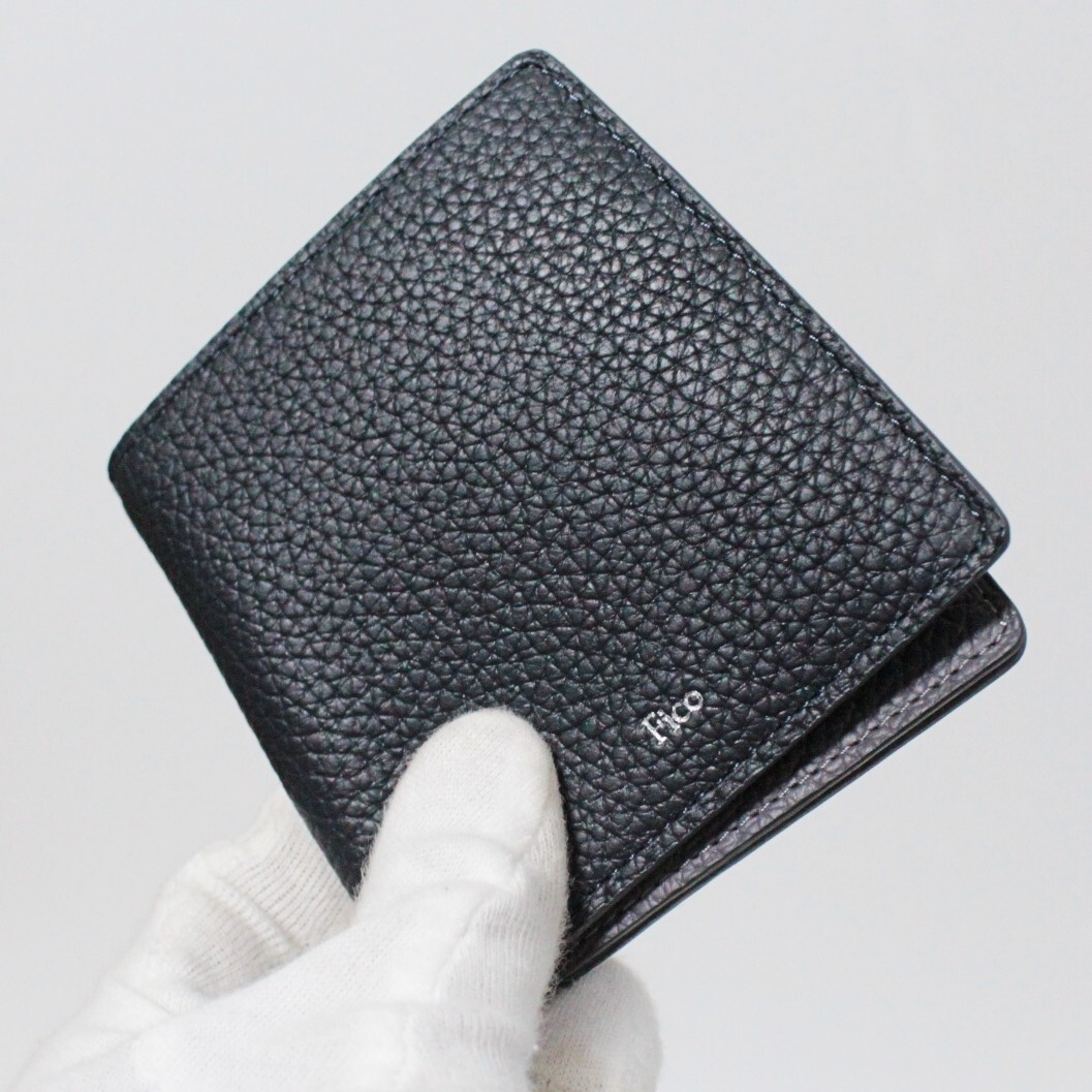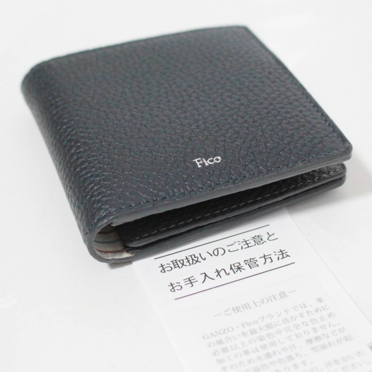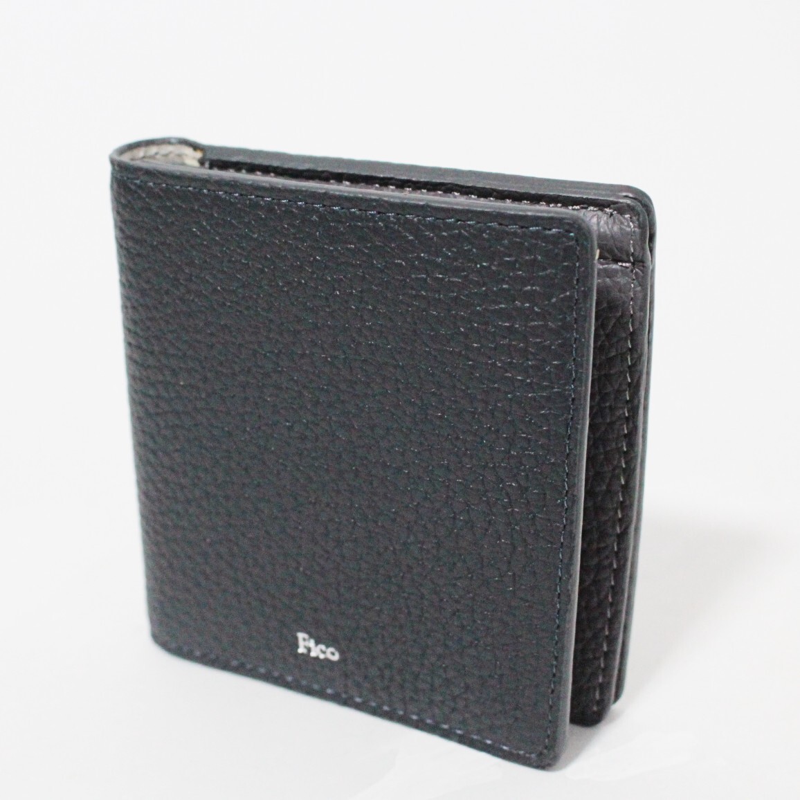 | 新品 フィーコ ファッチェ シュリンクレザー 小銭入れ付 マネークリップ 二つ折り財布 紺 K4231 |