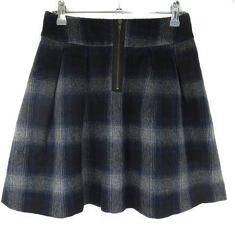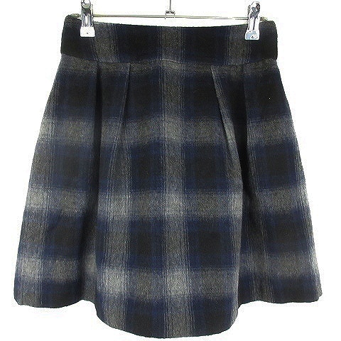 イミット オブ エナジー レイビームス スカート フレア ひざ丈 タック ウール アンゴラ混 チェック 0 黒 青 レディース