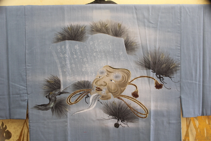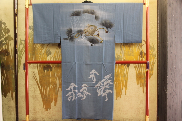 男の和服 長じゅばん 袖無双単衣仕立て 本モスリン生地絵羽柄付け