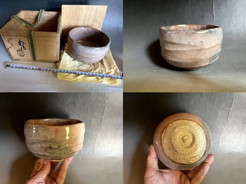 茶碗■吉向焼 吉向松月造 赤楽 共箱 抹茶碗 お茶道具 古美術 時代物 骨董品■
