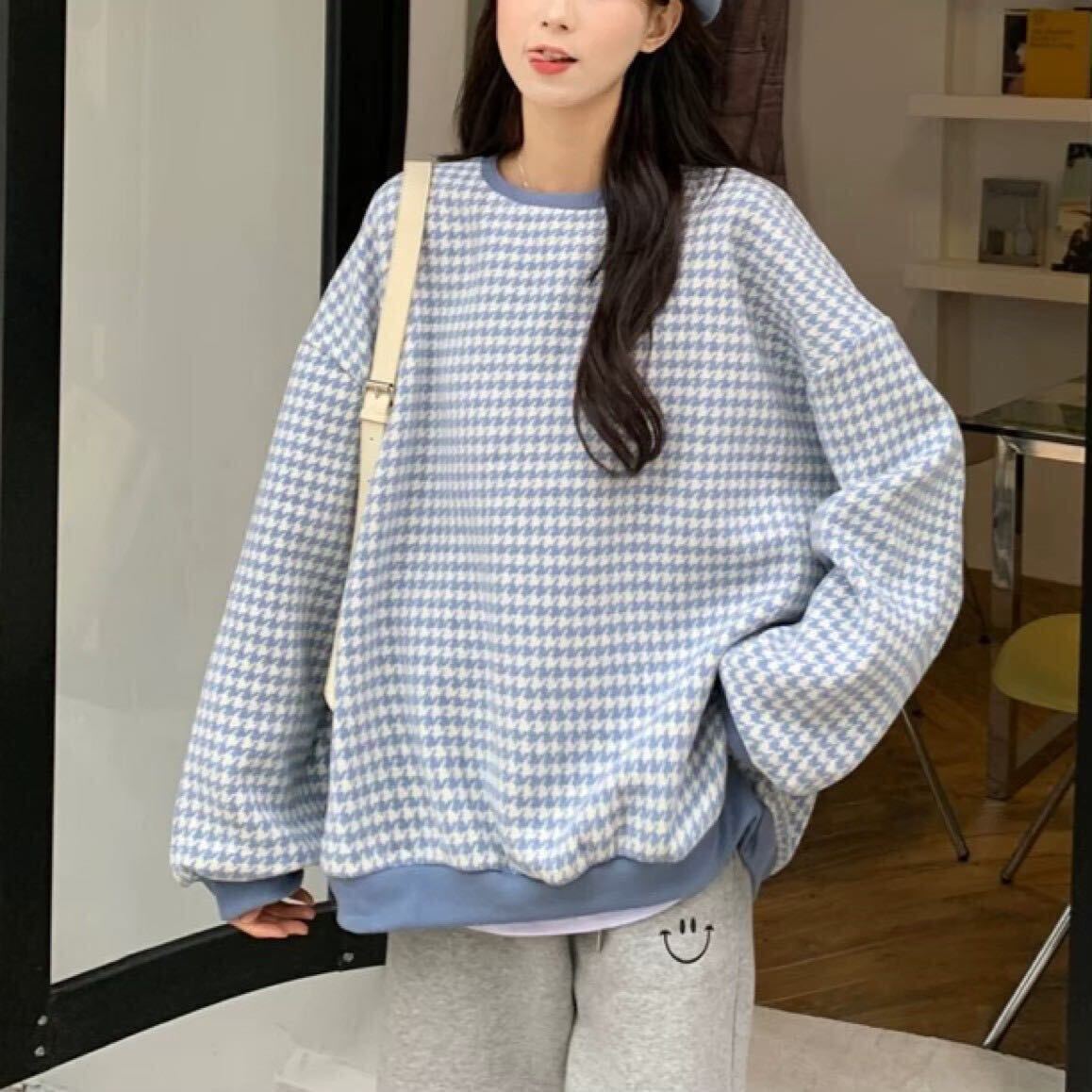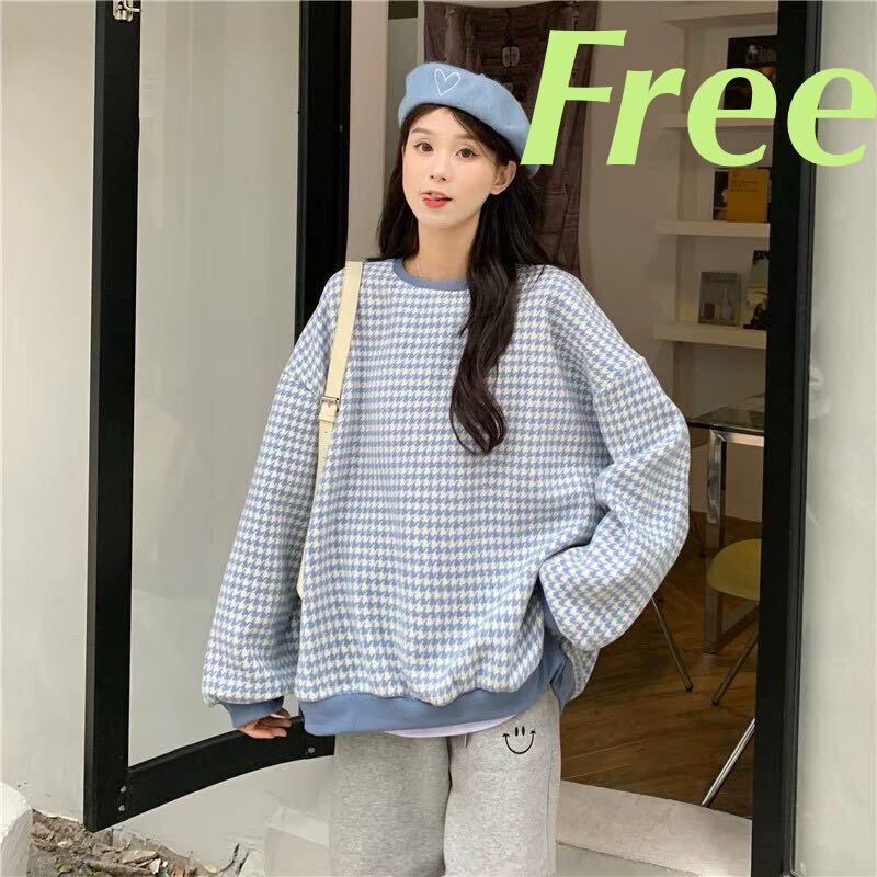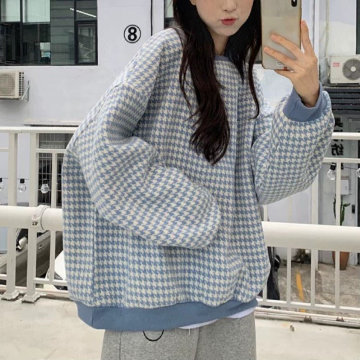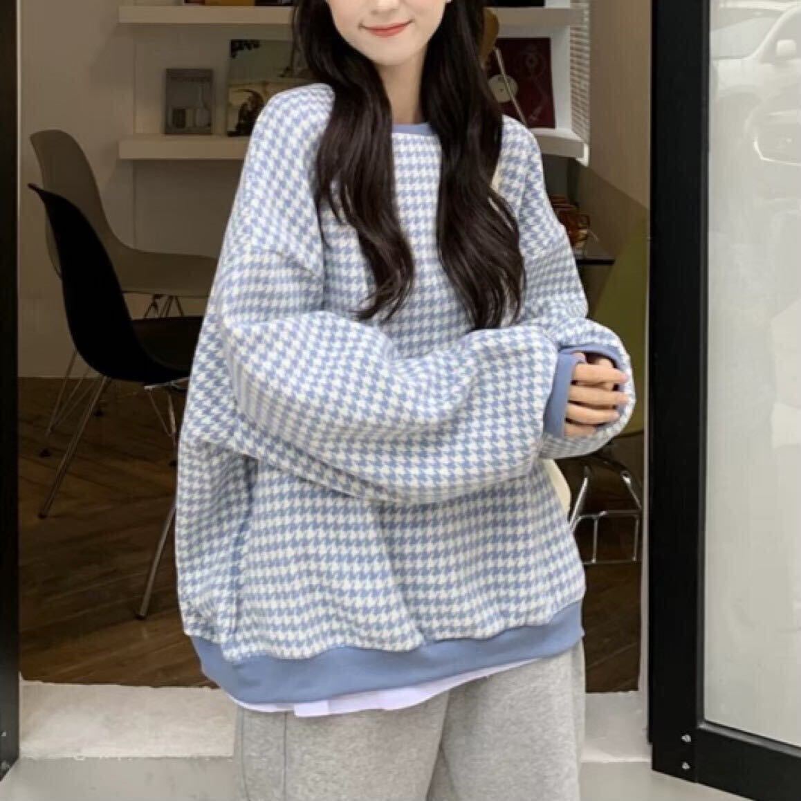 『 セーター 千鳥柄 ニット トップス 長袖 ビッグシルエット 』