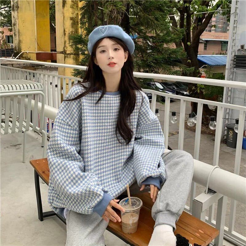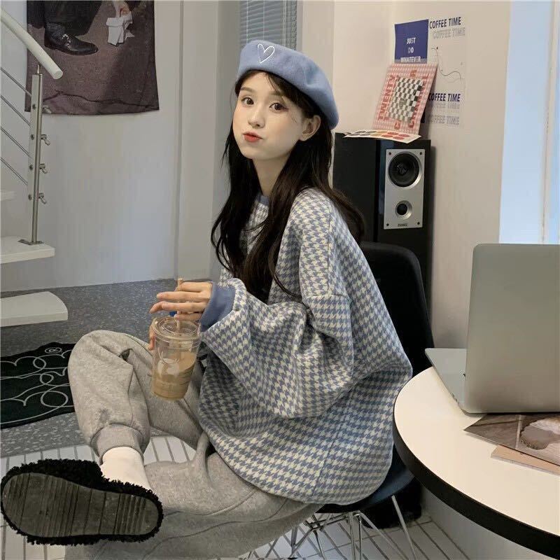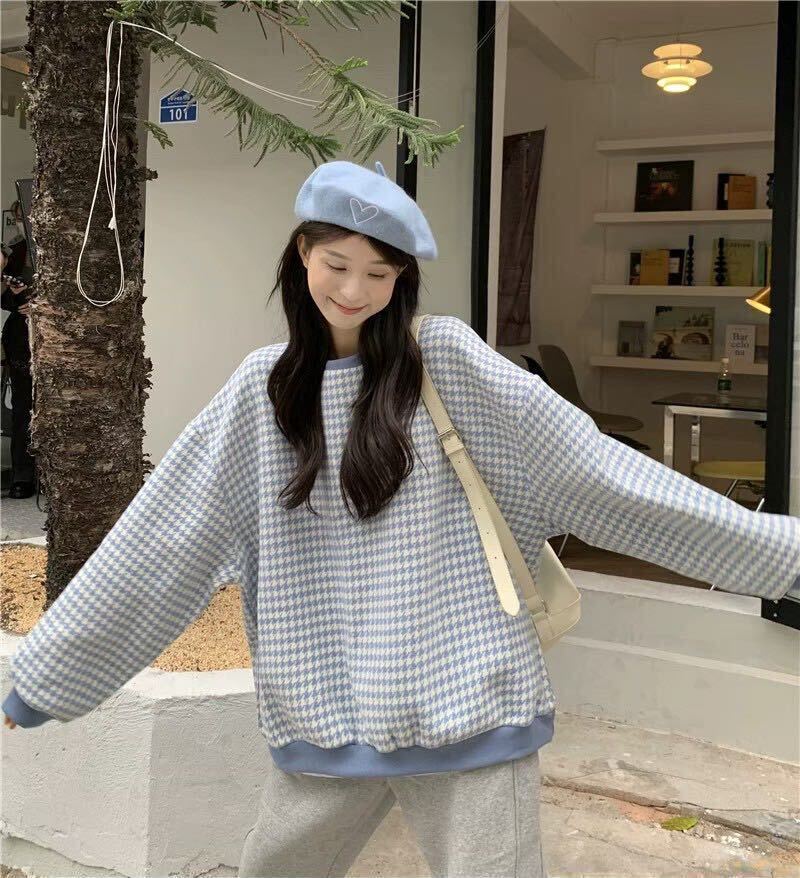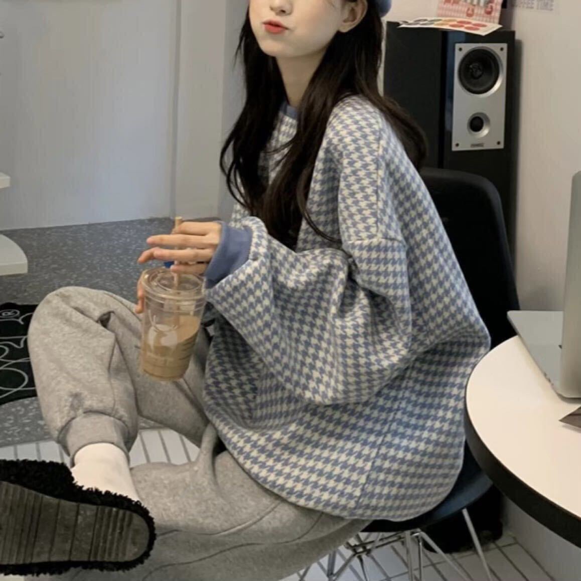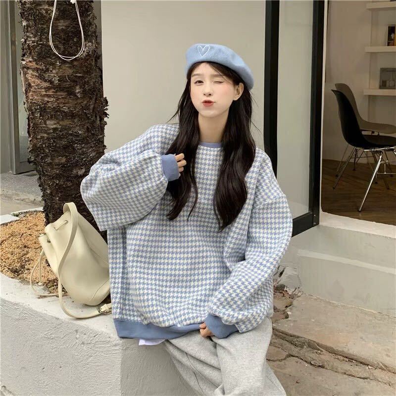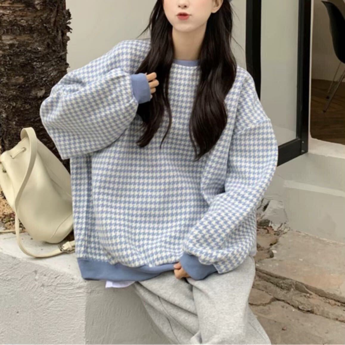 『 セーター 千鳥柄 ニット トップス 長袖 ビッグシルエット 』