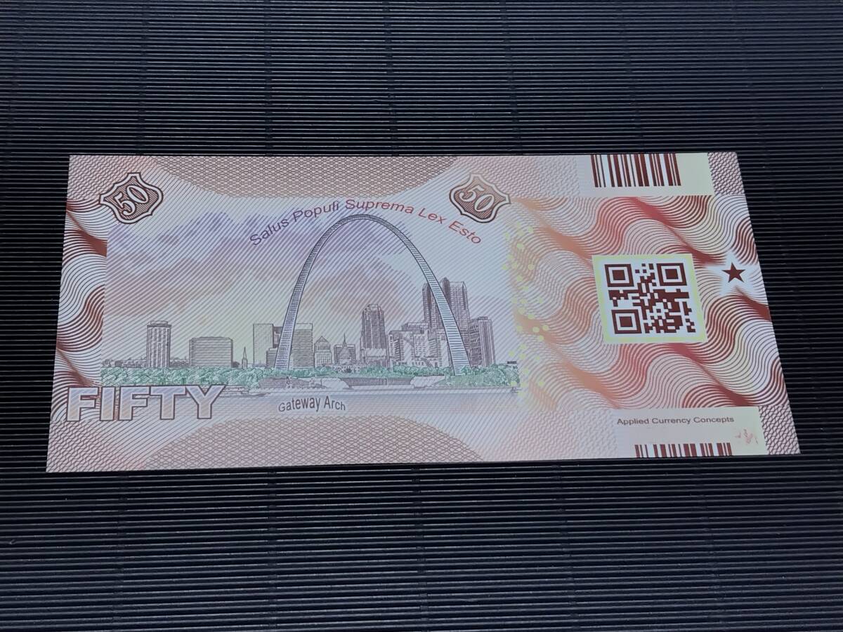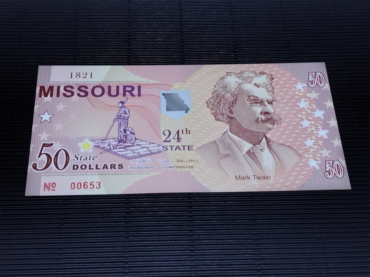 米国 ミズーリ州(24th STATE MO) 50 State DOLLARS ファンタジー紙幣 マーク・トウェイン セントルイスのゲートウェイ・アーチ#00653