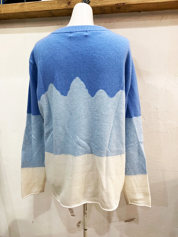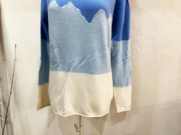 ★PICONE/ピッコーネ スパンコール&ラインストーン スキーニット ブルー系 レディース 38(Mサイズ相当) カシミア ニットソー ★