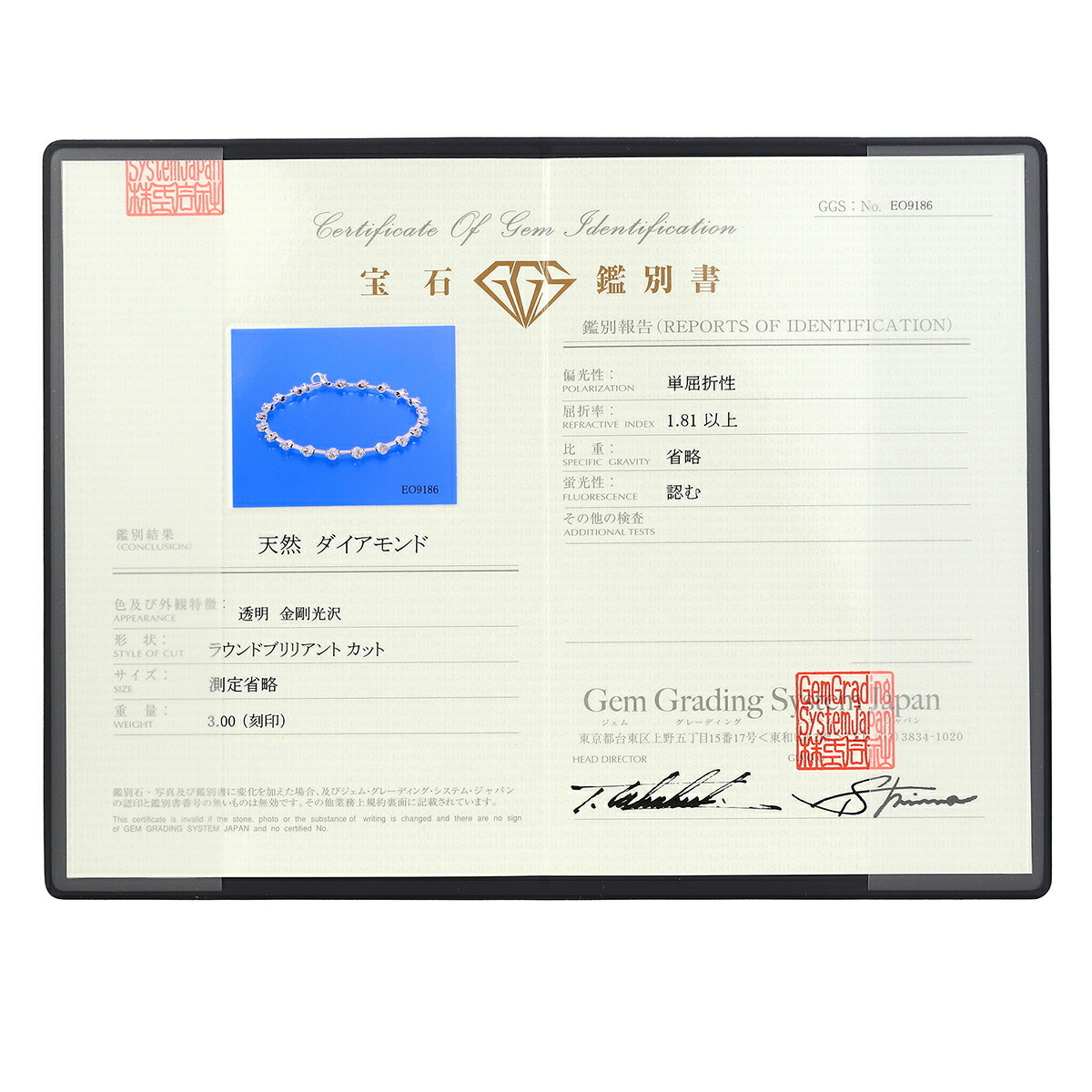 ラインのダイヤモンドが等間隔にセットされたスタイリッシュなブレスレット。総計3カラットのダイヤモンドの眩い輝きが腕元を華やかに飾ってくれます。