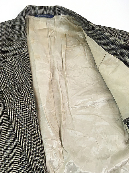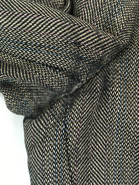 ツイードルックの上質ウール素材・裏地光沢サテンライナー・内ポケット内側にACTWUタグ。