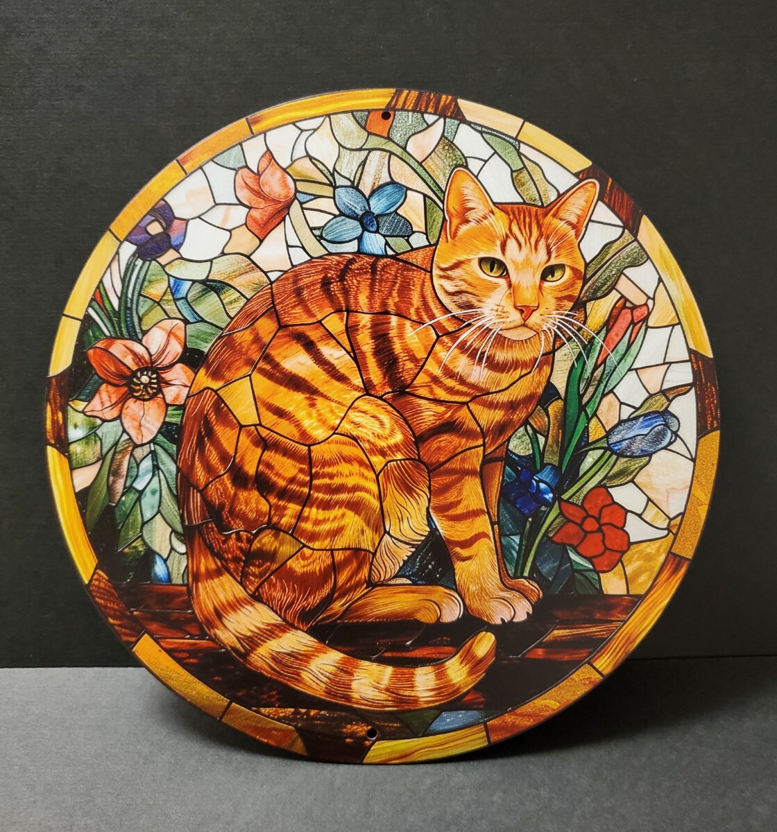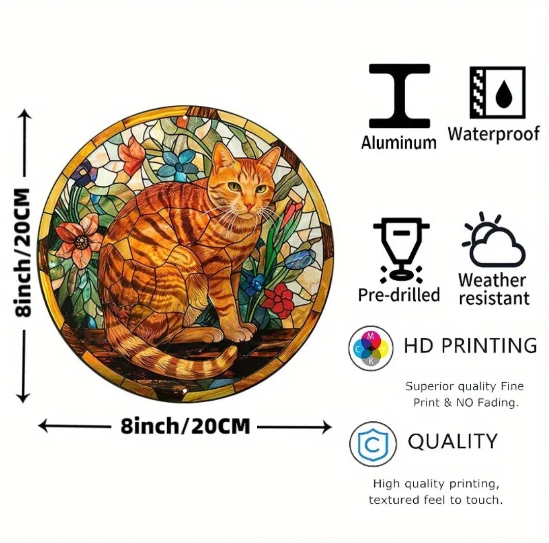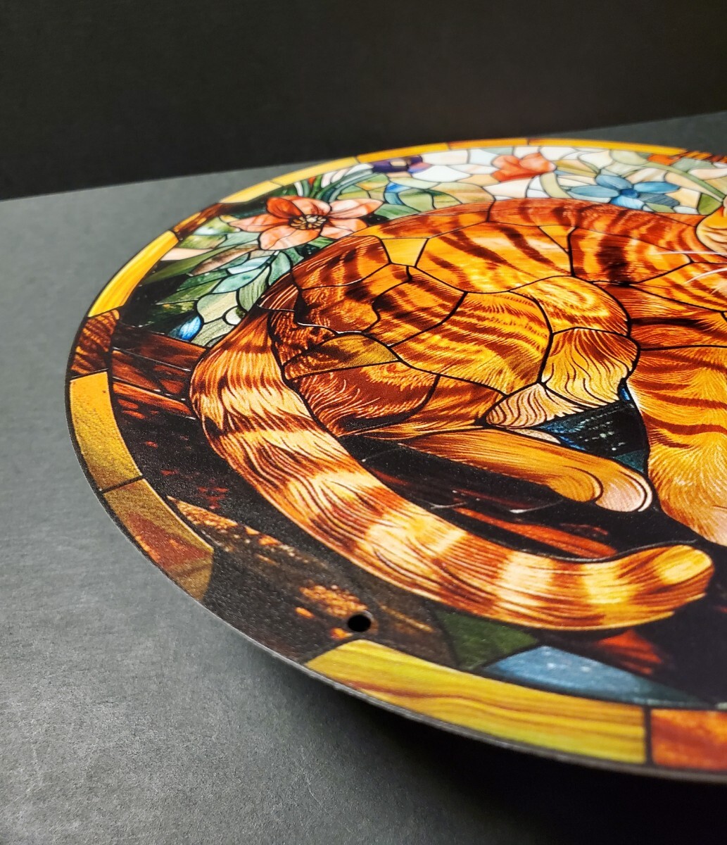 アルミニウムのメタルボードに3Dのプリント技術で描かれた猫のメタルアートです。