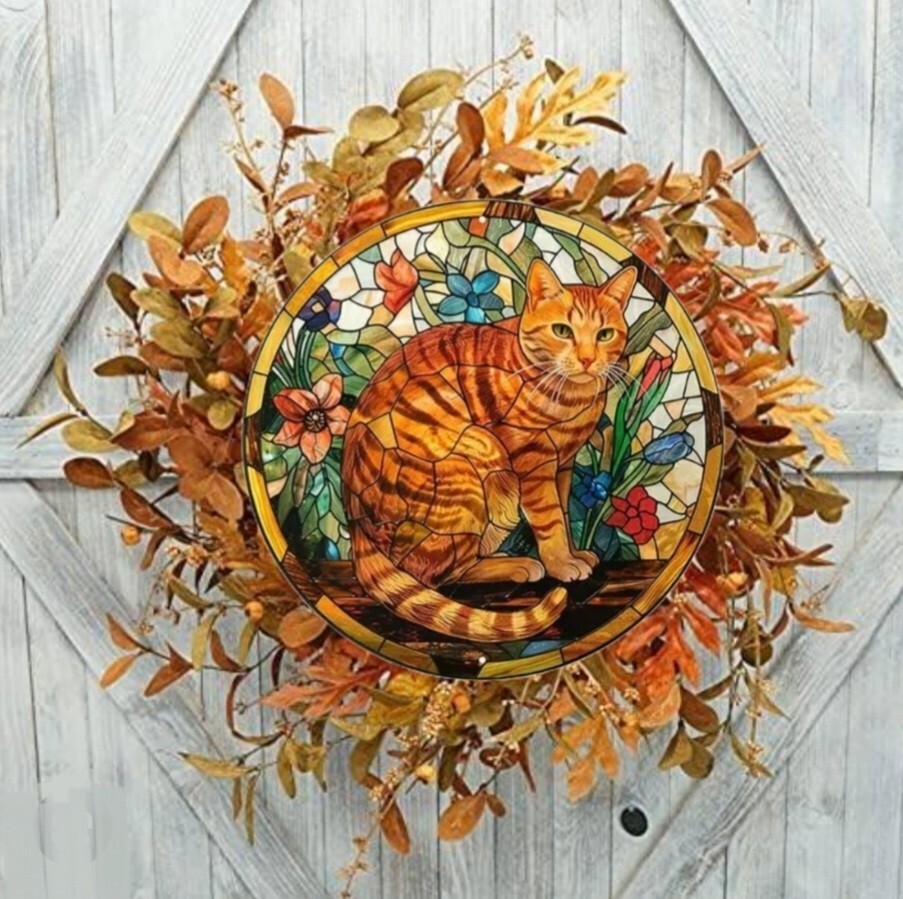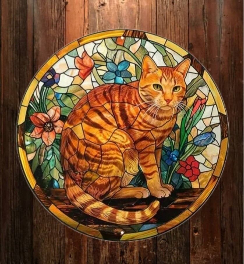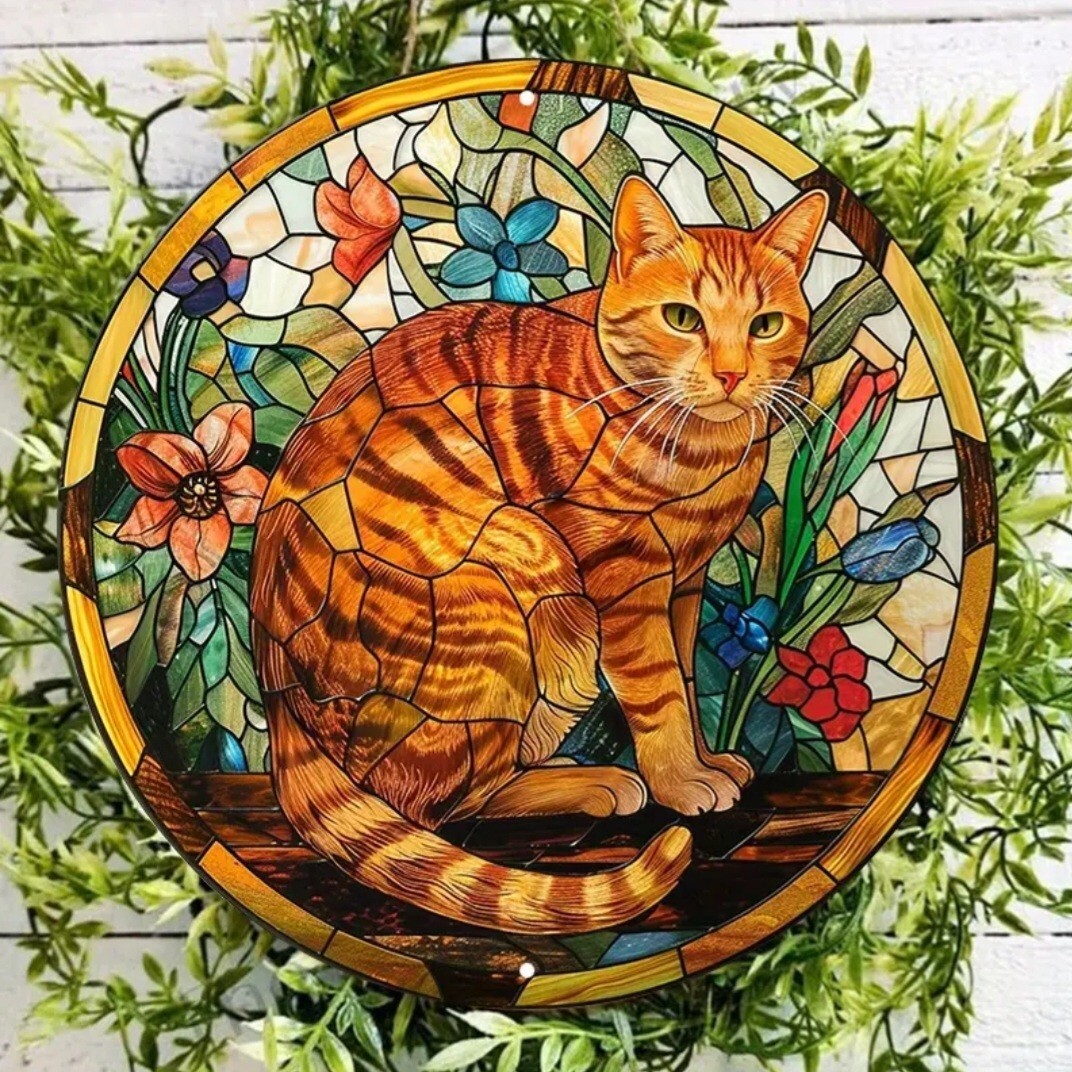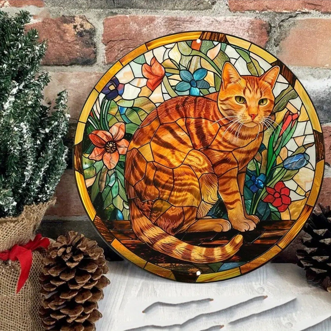 アルミニウムのメタルボードに3Dのプリント技術で描かれた猫のメタルアートです。