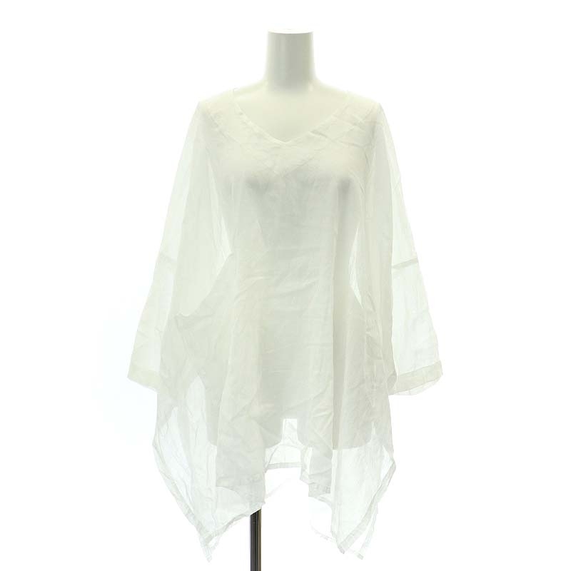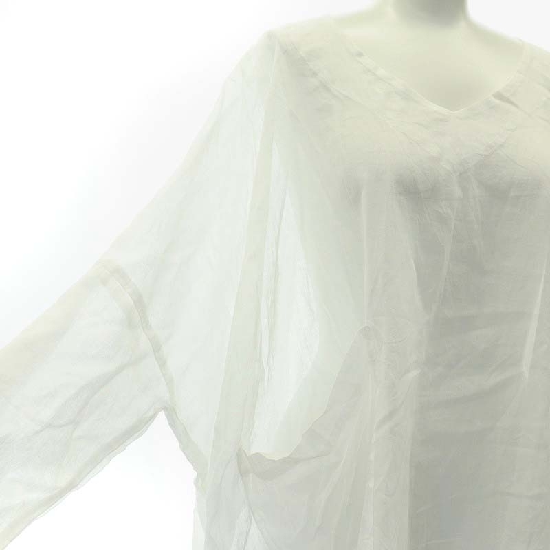 ギャレゴデスポート gallego desportes コットン シアー ノーカラーチュニック 長袖 Vネック シースルー オーバーサイズ S 白 ホワイト