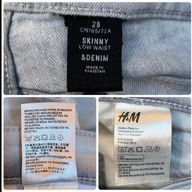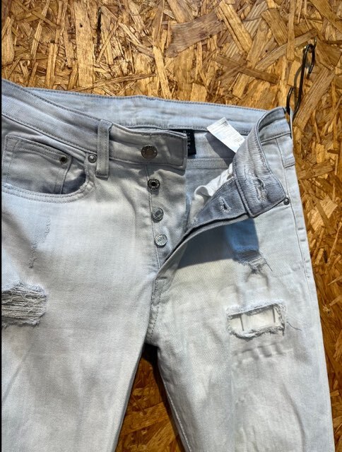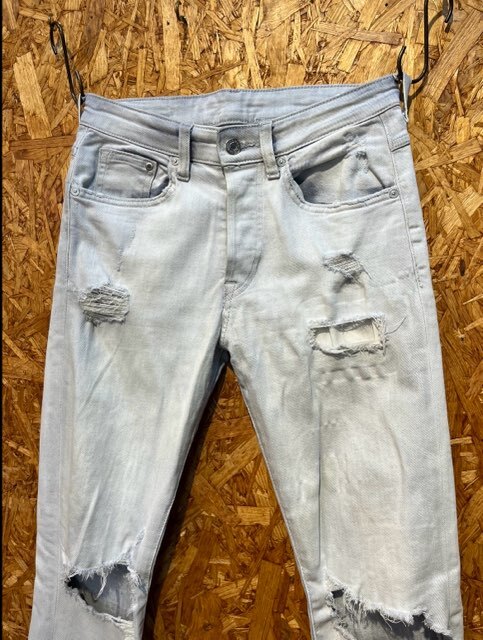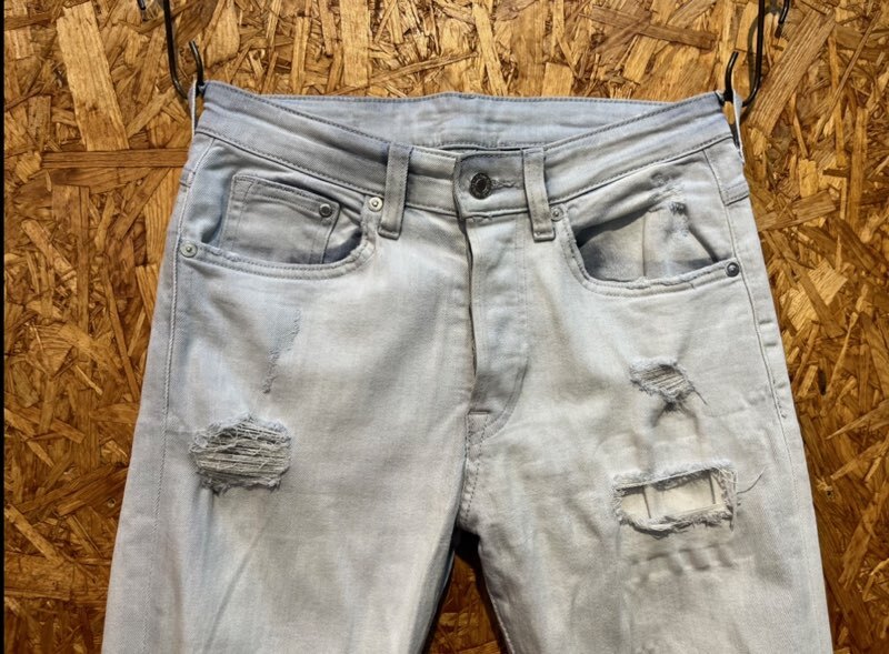 P メンズ パンツ H&M デニム スキニー スリム ストレッチ ブリーチ ダメージ加工 小さい サイズ FF140 / W28 全国一律レターパック配送