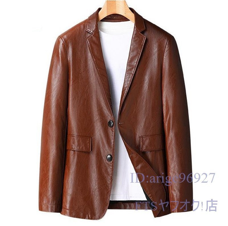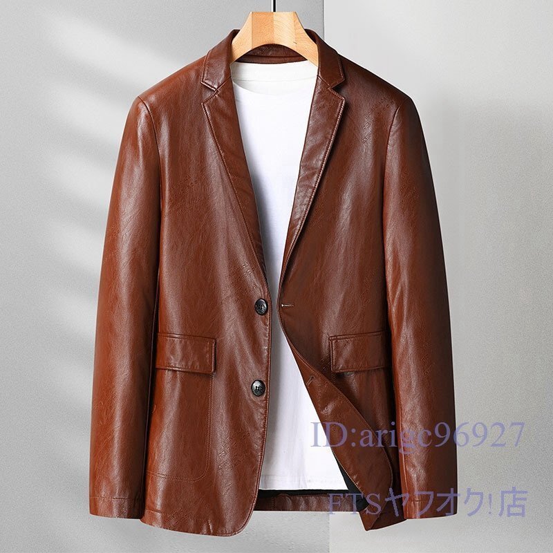 T764☆新品テーラードジャケット 革ジャケット カジュアル ブレザー メンズ 春秋薄め 合成皮革 アウター コート 2つボタン ブラウン M