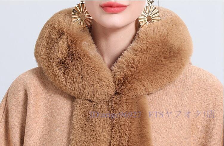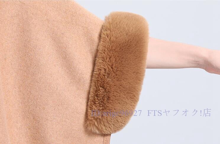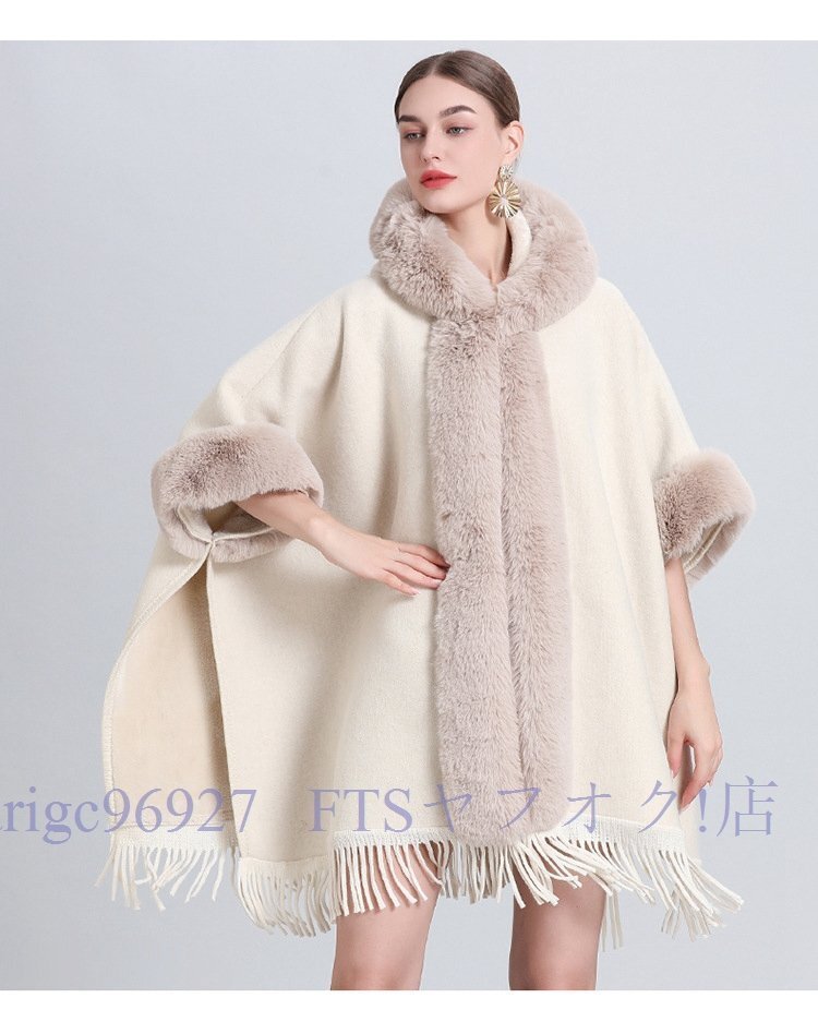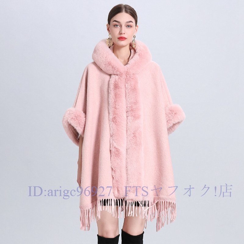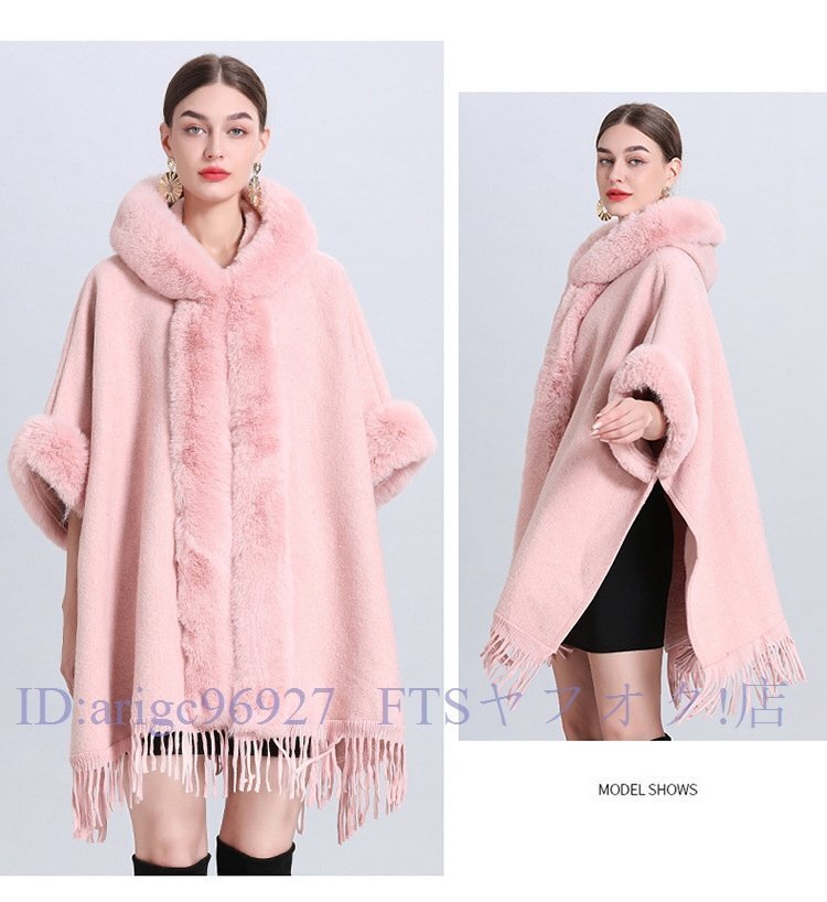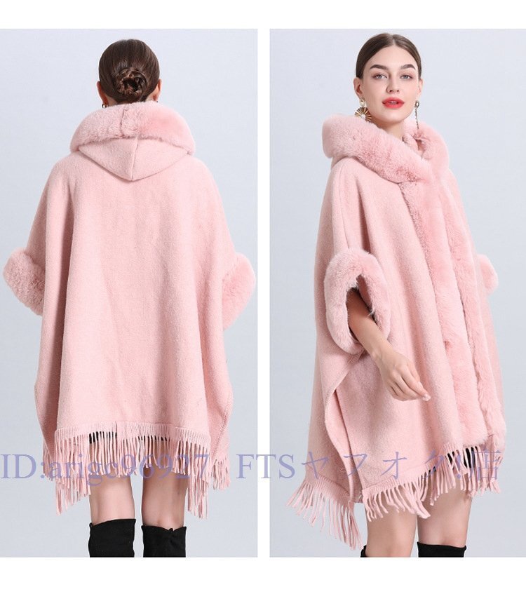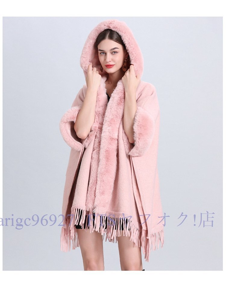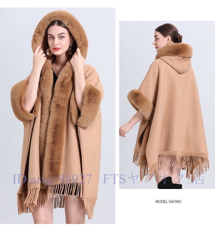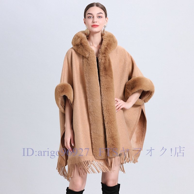 A6483☆新品冬 ポンチョコート レディース マントコート 無地 フード付きフリンジ フェイクカシミヤニットカーディガン