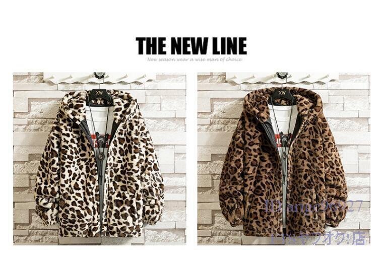 A0540☆新品メンズ ボアジャケット ジャケット ボアコート ブルゾン レオパード柄 ヒョウ柄 フード付き 防寒服 ライダース S-3XL