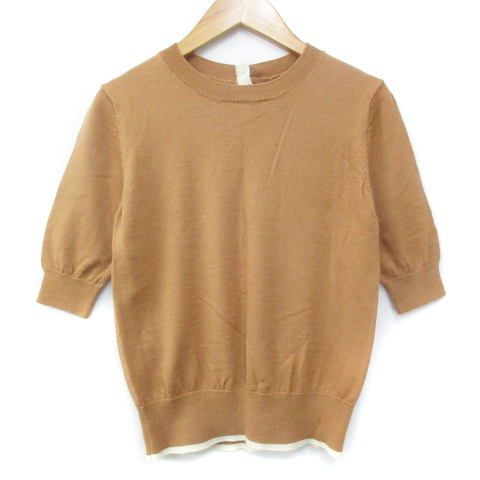 オペークドットクリップ OPAQUE.CLIP ニット カットソー 五分袖 クルーネック 無地 M ベージュ 白 ホワイト /FF30 レディース