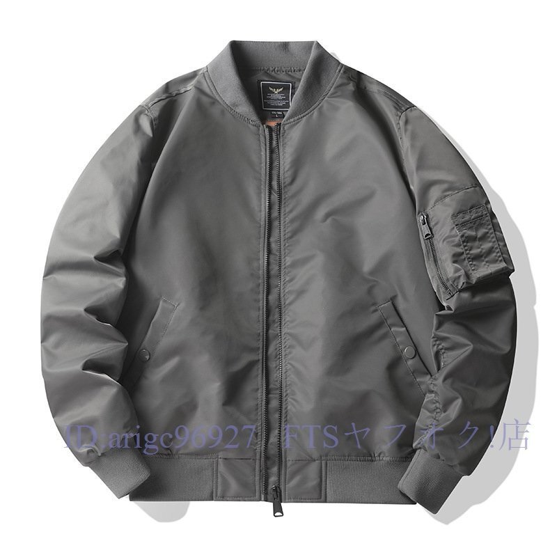 A5182☆メンズ フライトジャケット MA1ジャケット 中綿 ミリタリージャケット 野球服 ブルゾン 冬 厚手 アウター 防風 防寒 グレー