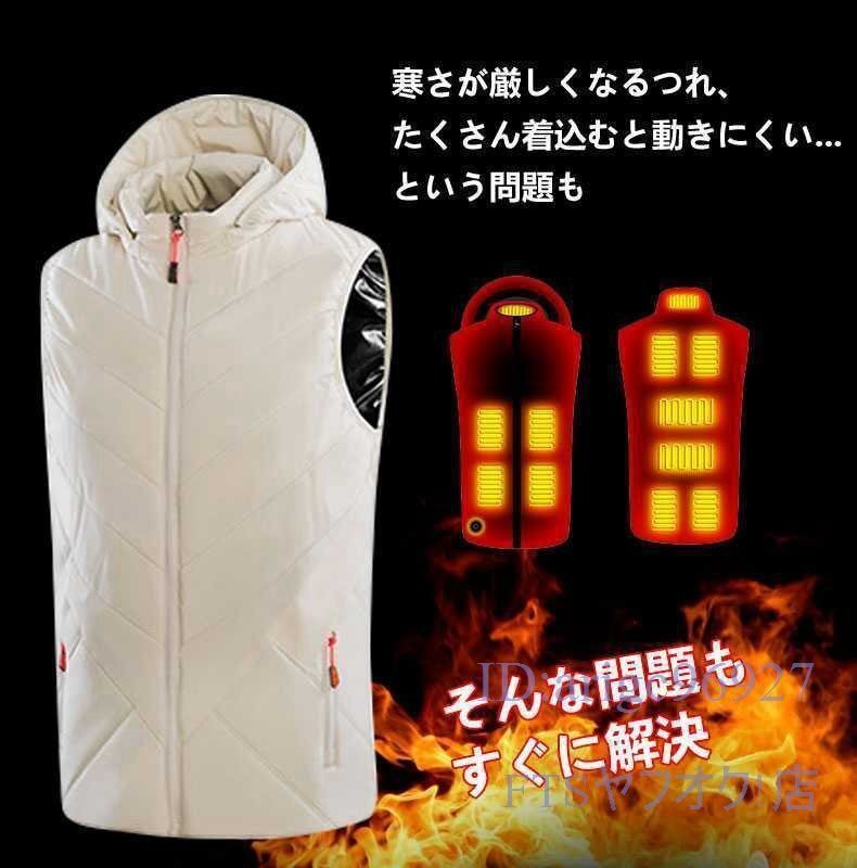 W917☆11つヒーター内蔵ヒーターベスト スキー 防寒ベスト加熱ベスト 電熱ジャケットUSB充電式 洗濯機で洗えます バイク 釣り 男女用 4XL