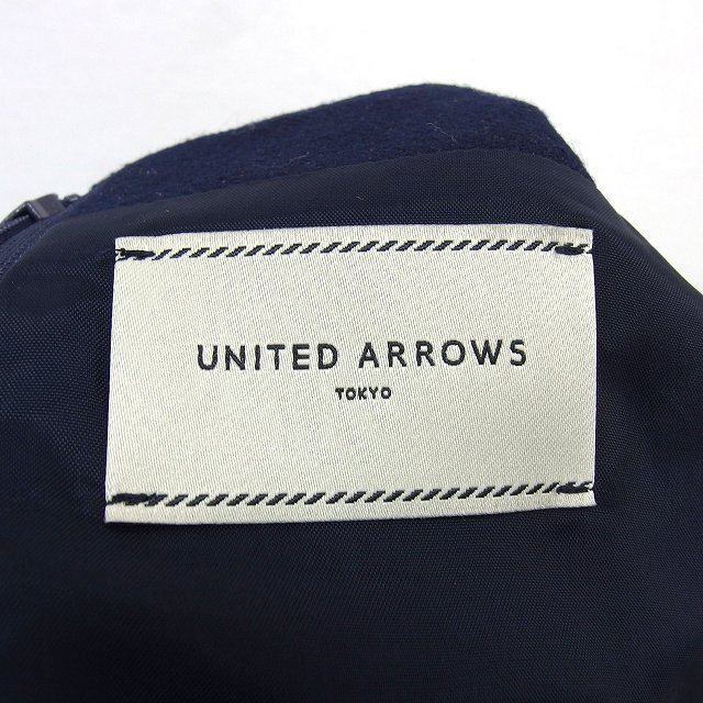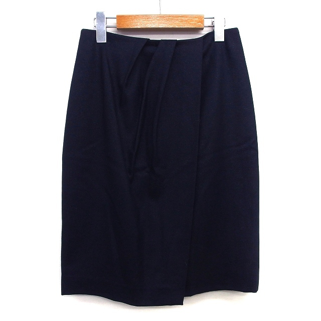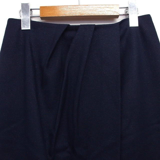 ユナイテッドアローズ UNITED ARROWS 台形 スカート 膝丈 ラメ混 タック ウール 毛 38 ネイビー 紺 /HT23 レディース