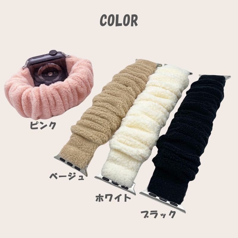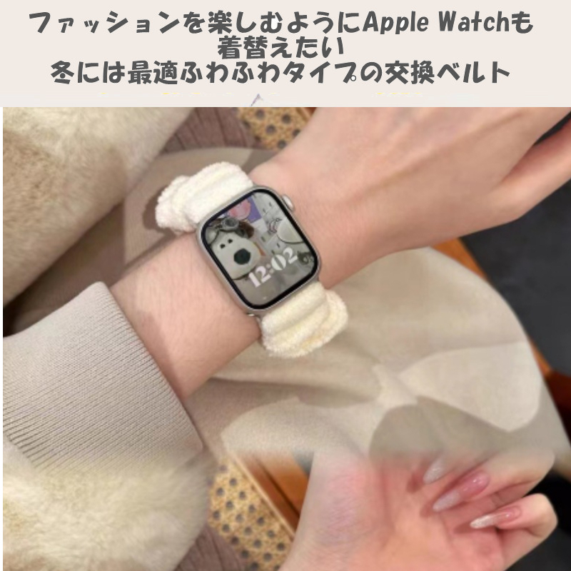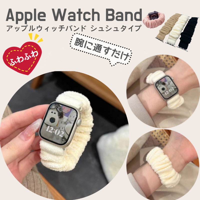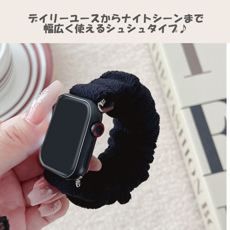 126 アップルウォッチ バンド シュシュ ベルト 38mm 41mm 40mm 45 42 44 mm ふわふわ series 9 8 7 6 SE 第二世代 レディース かわいい