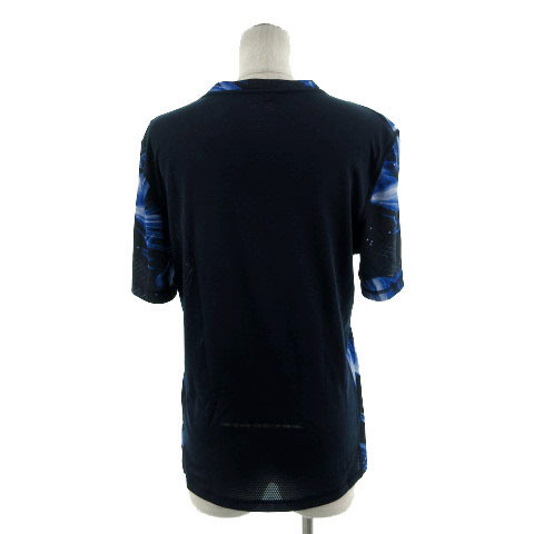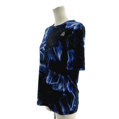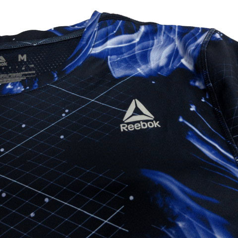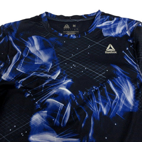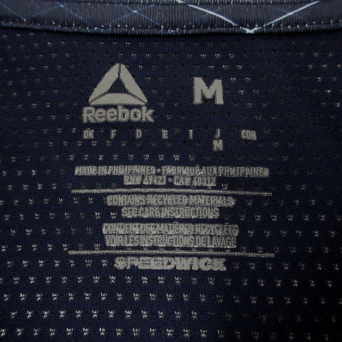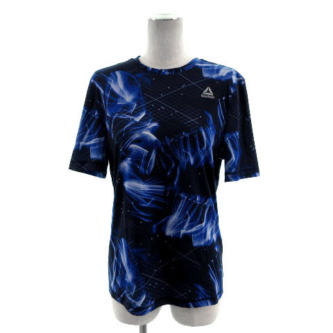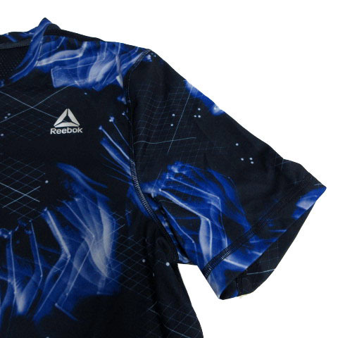 リーボック Reebok Tシャツ SPEEDWICK 丸首 半袖 メッシュ切替え ロゴプリント 速乾 総柄 ネイビー 紺 ブルー 青 ホワイト 白 M