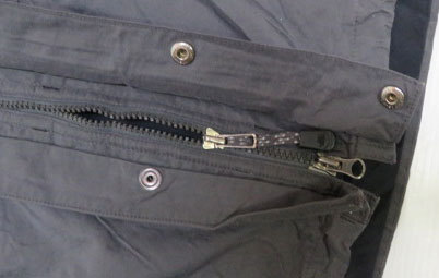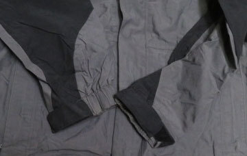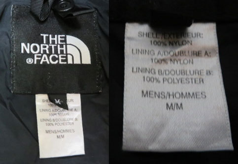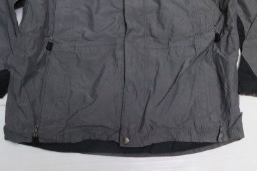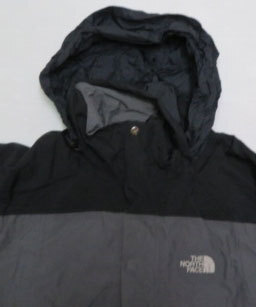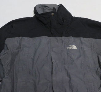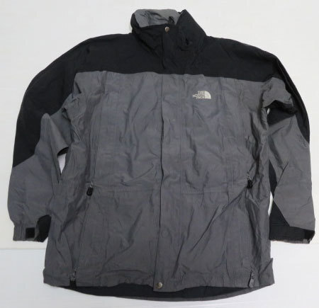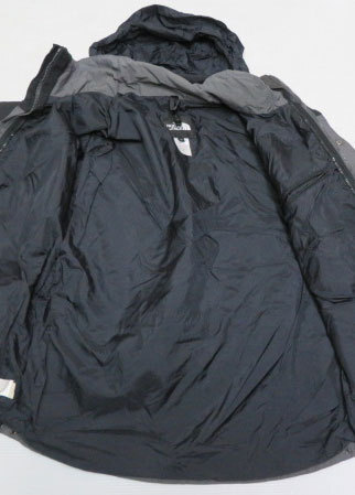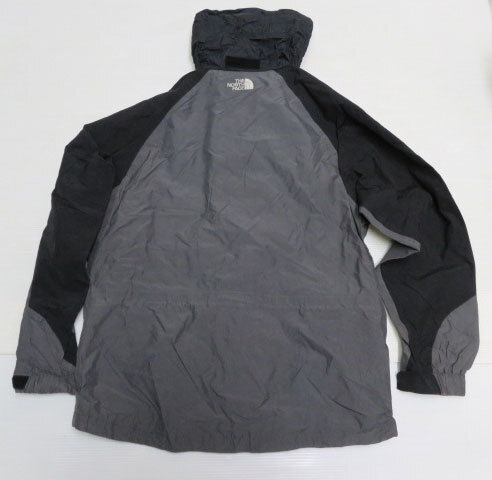 アメリカ買い付けのNORTH FACEのナイロンマウンテンパーカーの黒Xグレー系で襟にパーカー収納可能です。