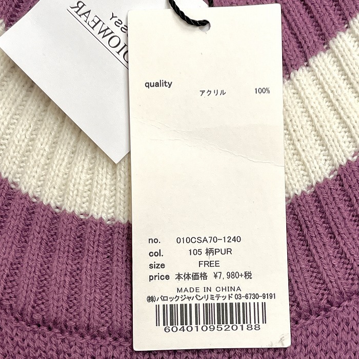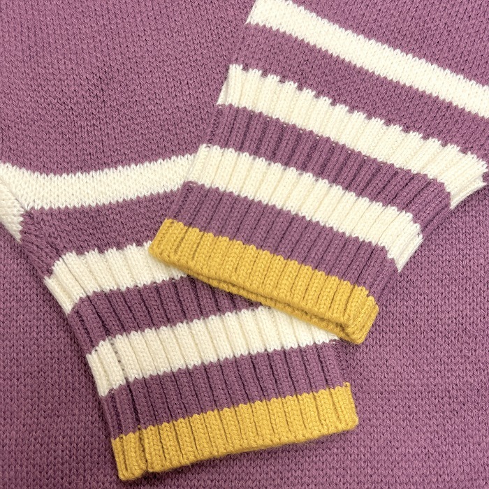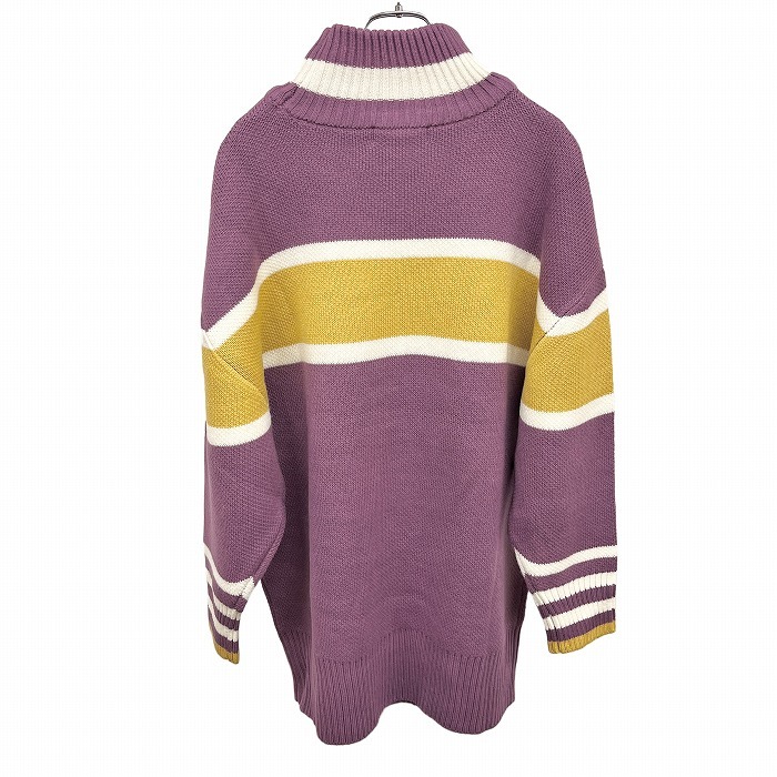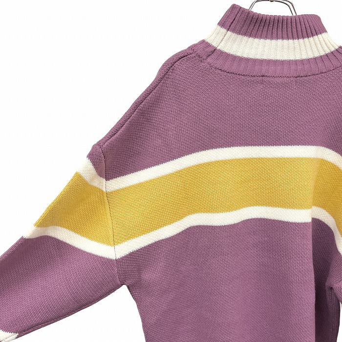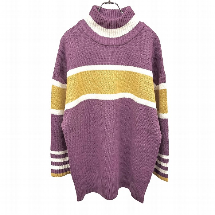 | 商品タイトル | 【新品】MOUSSY STUDIOWEAR ニット セーター ハイネック ボーダー 長袖 アクリル100% Free パープル 紫×マスタード系×白 レディース |