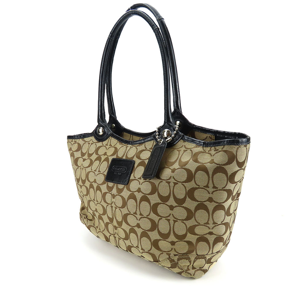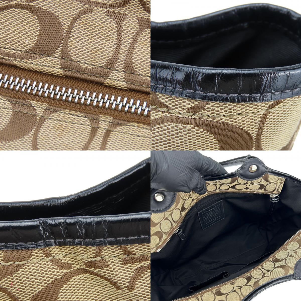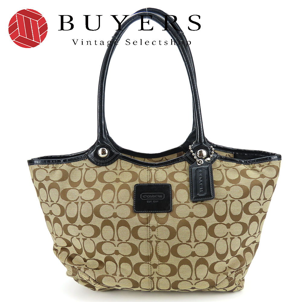 | 品名 | 【中古】 コーチ トートバッグ F14385 シグネチャー キャンバス パテントレザー ベージュ ブラック シルバー金具 肩掛け レディース 女性 COACH |