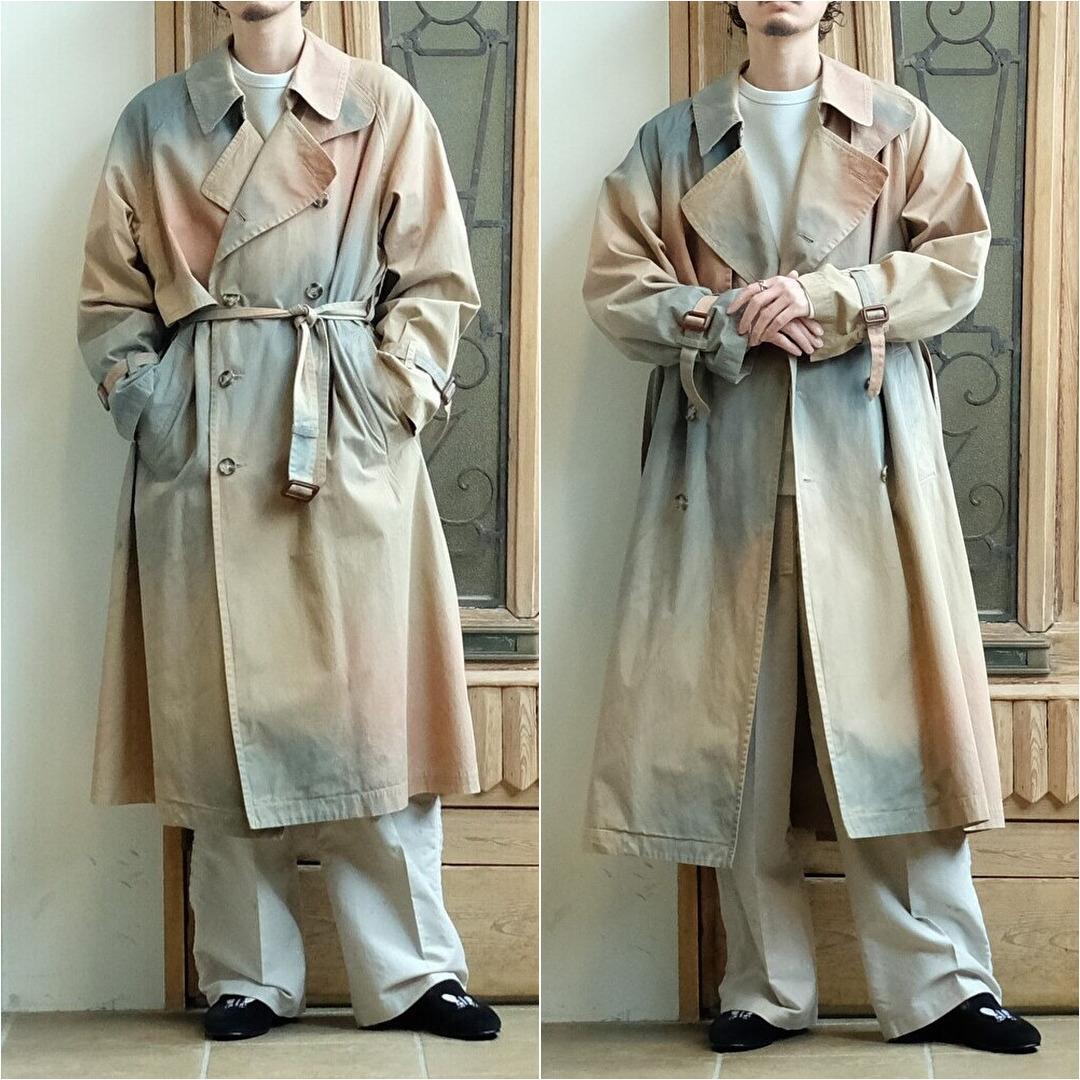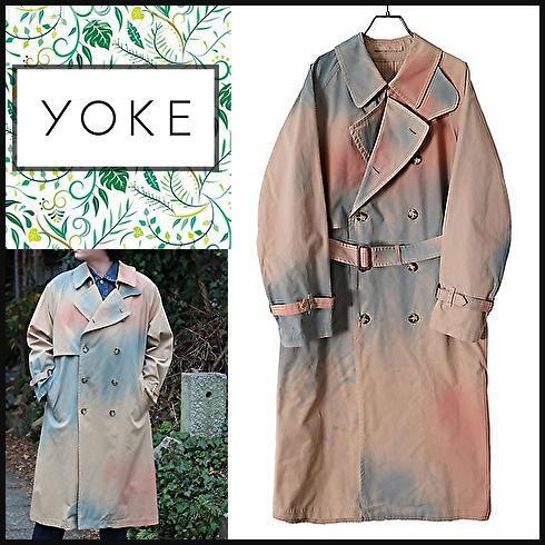 【YOKE】SPRAY PRINTED TRENCH COAT トレンチコート ヨーク ユニセックス 2 スプレー染 ベージュ系 コットン 匿名発送 返品不可