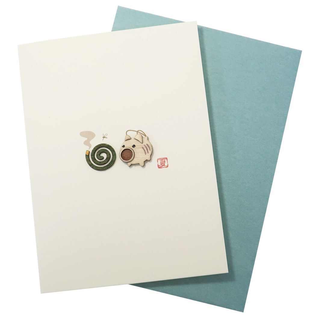 夏柄のウッドパーツを使用した和風のメッセージカード 贈ってももらっても楽しいおしゃれなグリーティングカードこちらはウッドパーツを使用したかわいいメッセージカード夏生まれのバースデーカードや暑中お見舞い、残暑お見舞い、季節のご挨拶などいろいろお使いいただけます。専用封筒付きで、カードにメッセージが書き込めます。かわいいCARDいろいろあるのでお気に入りを揃えてください。封筒サイズ:101x136mm(定型内)[Made in Japan]郵送の際は料金をお確かめください。