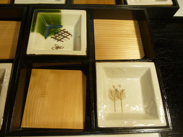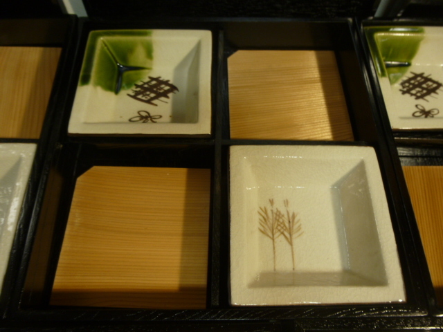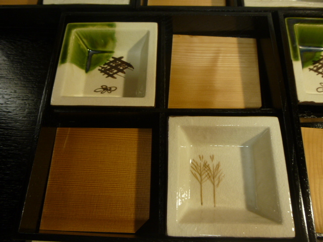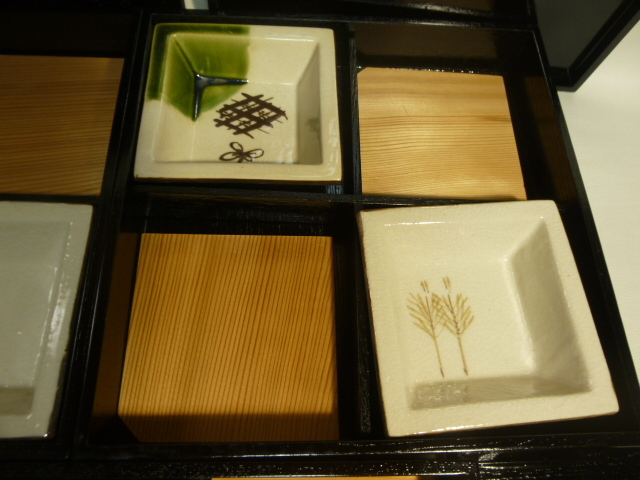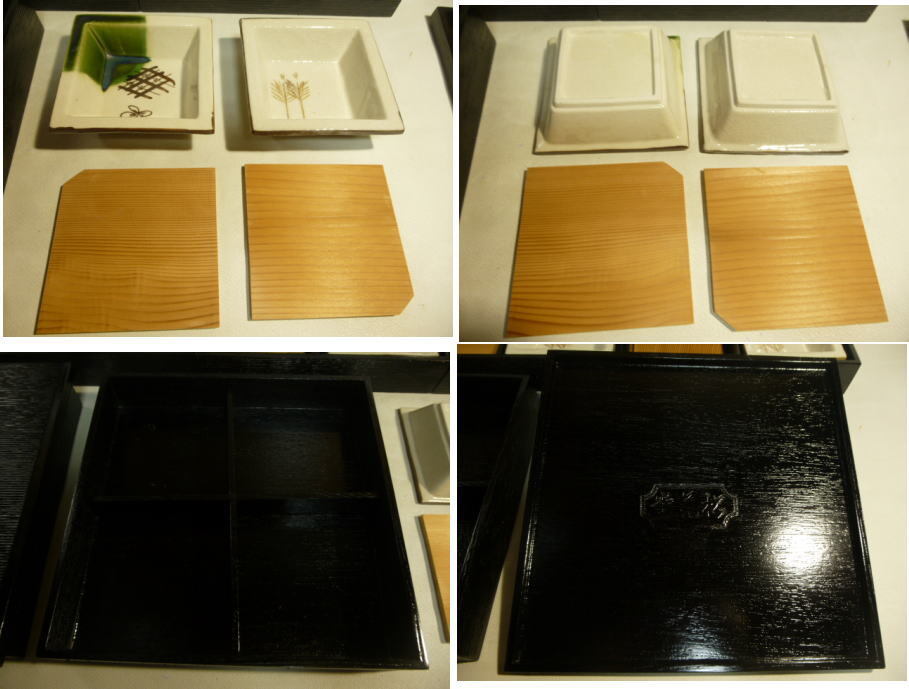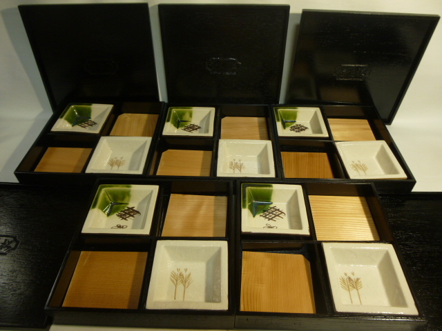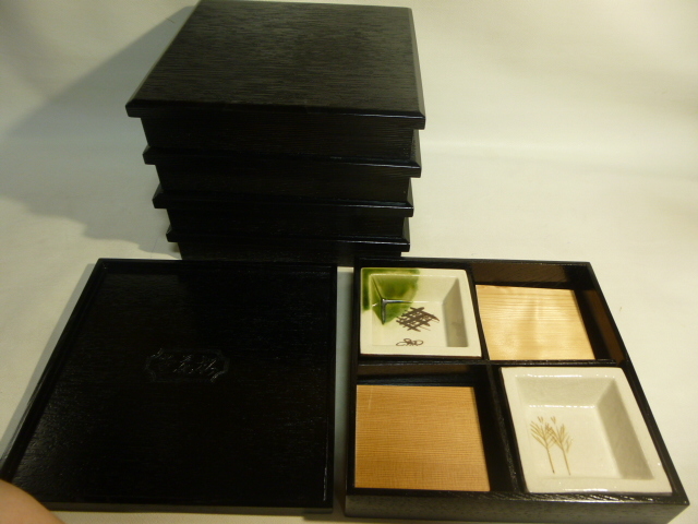 松花堂弁当 5客揃え 木製漆器 角皿織部 黒漆 茶懐石 漆器