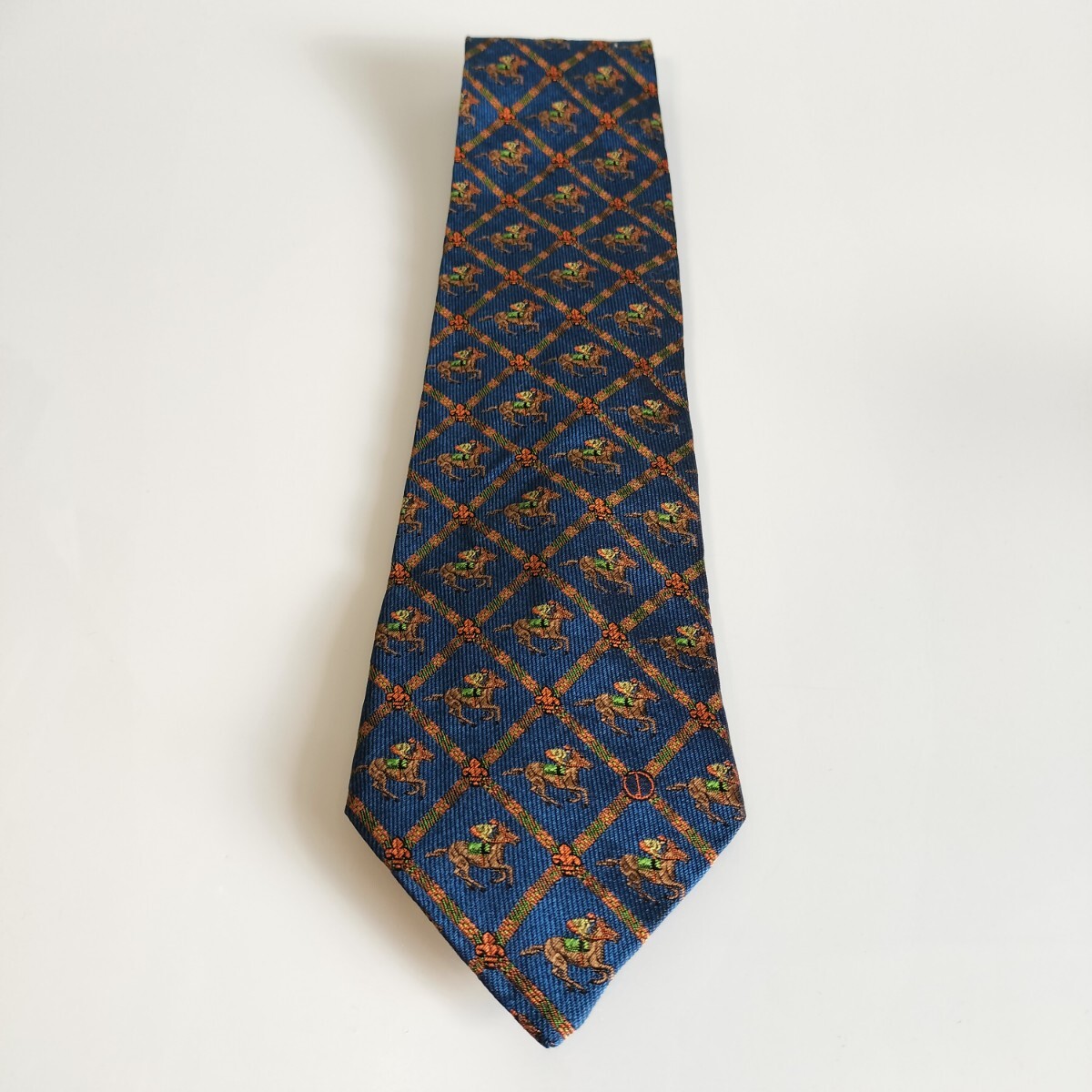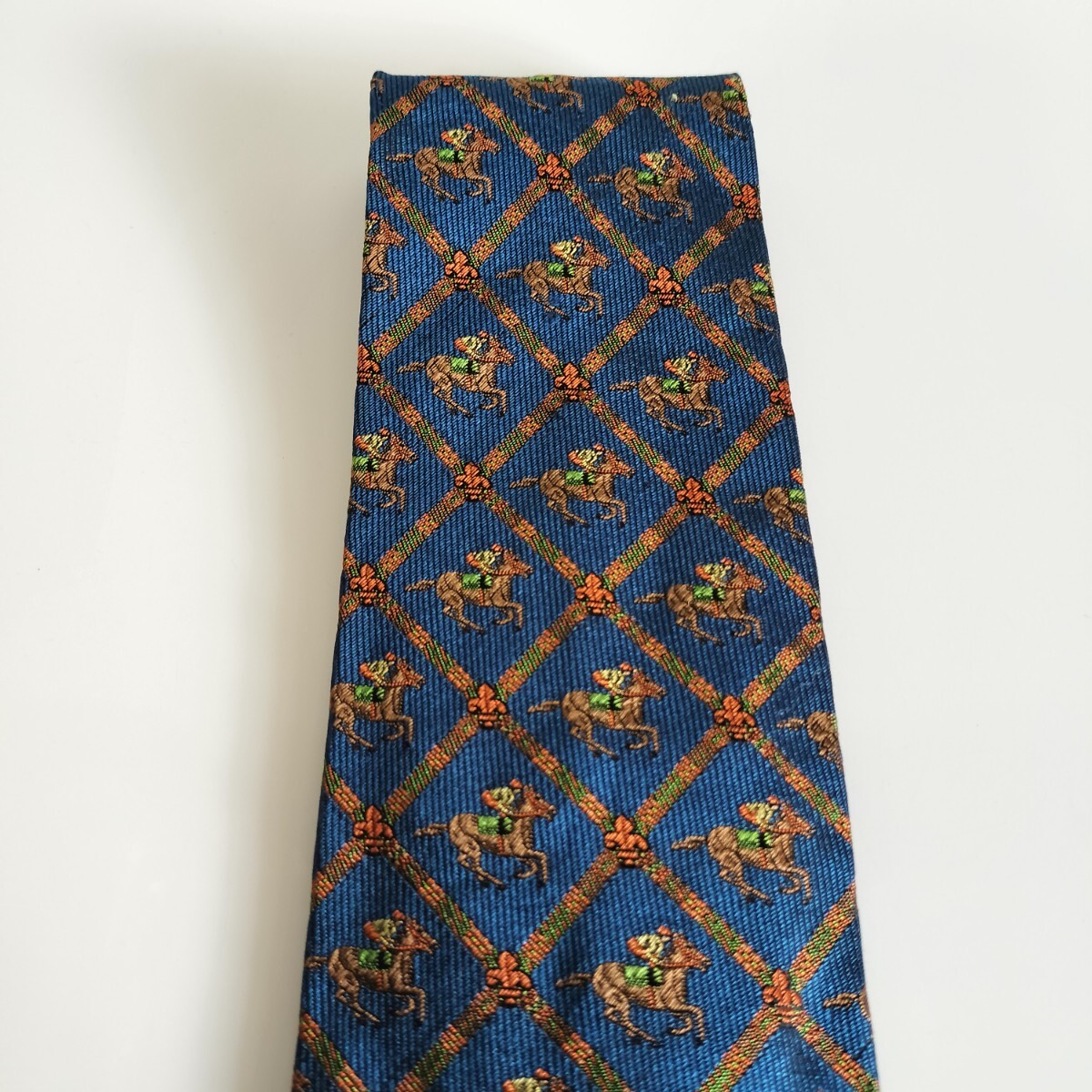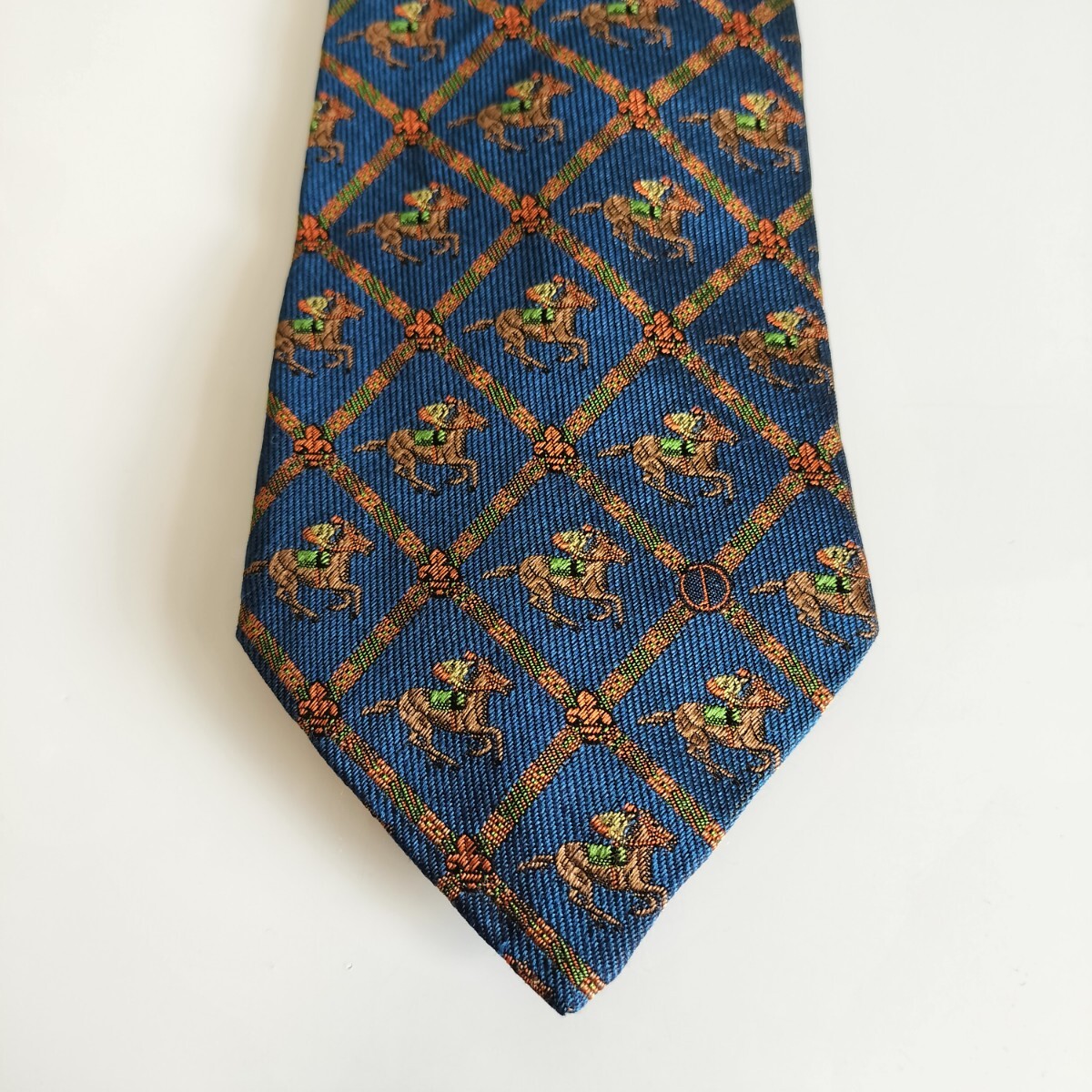 紺緑茶馬人乗りチェックDロゴネクタイ