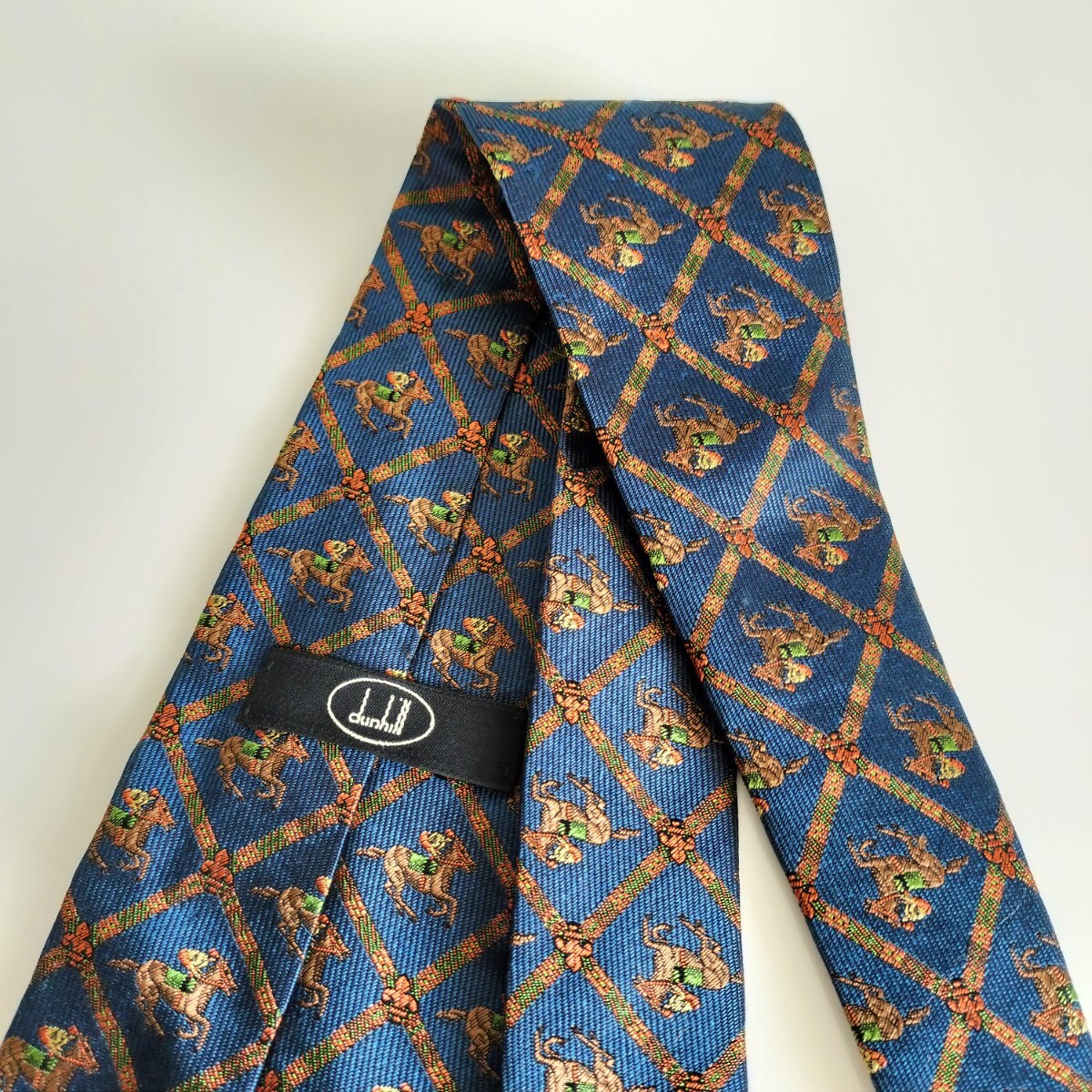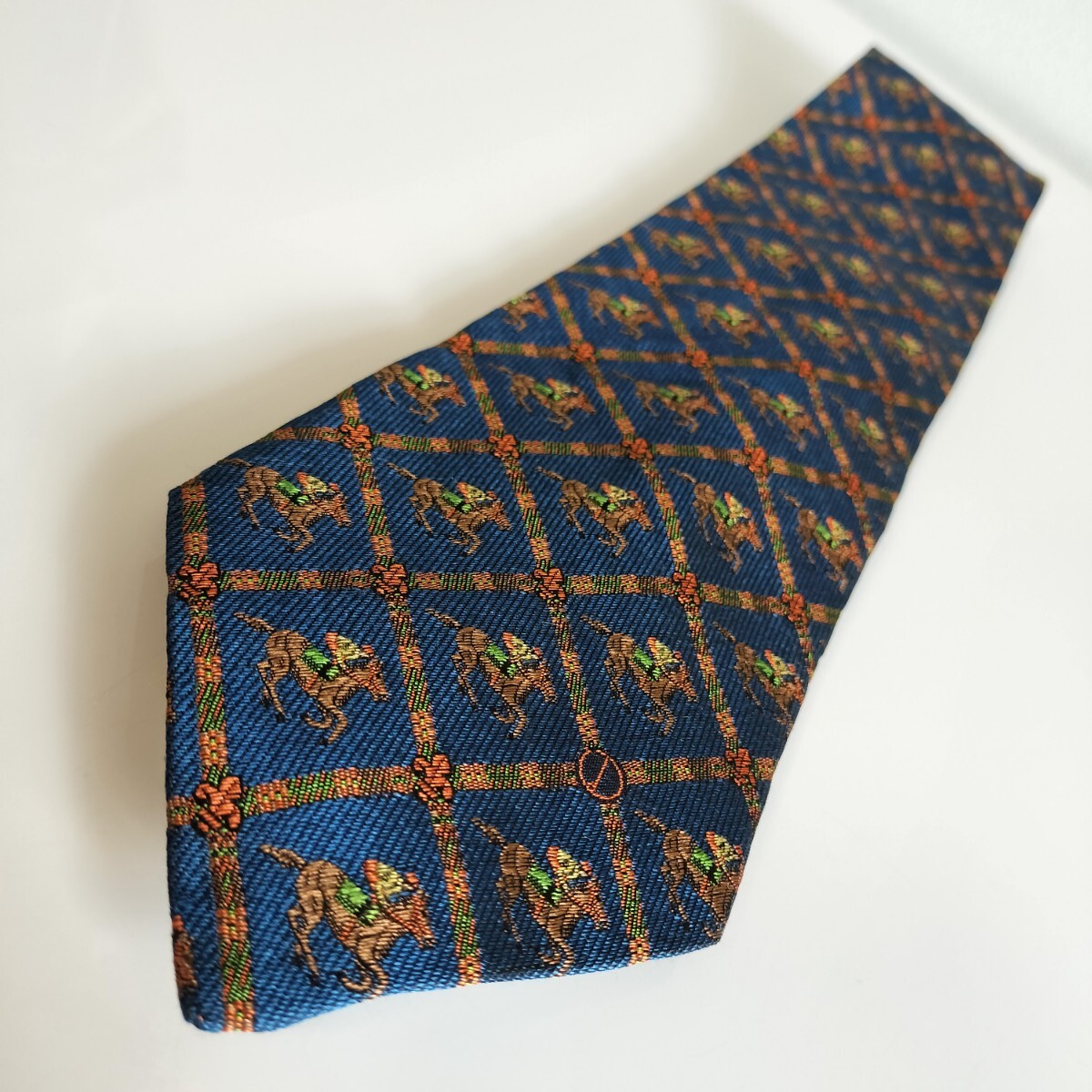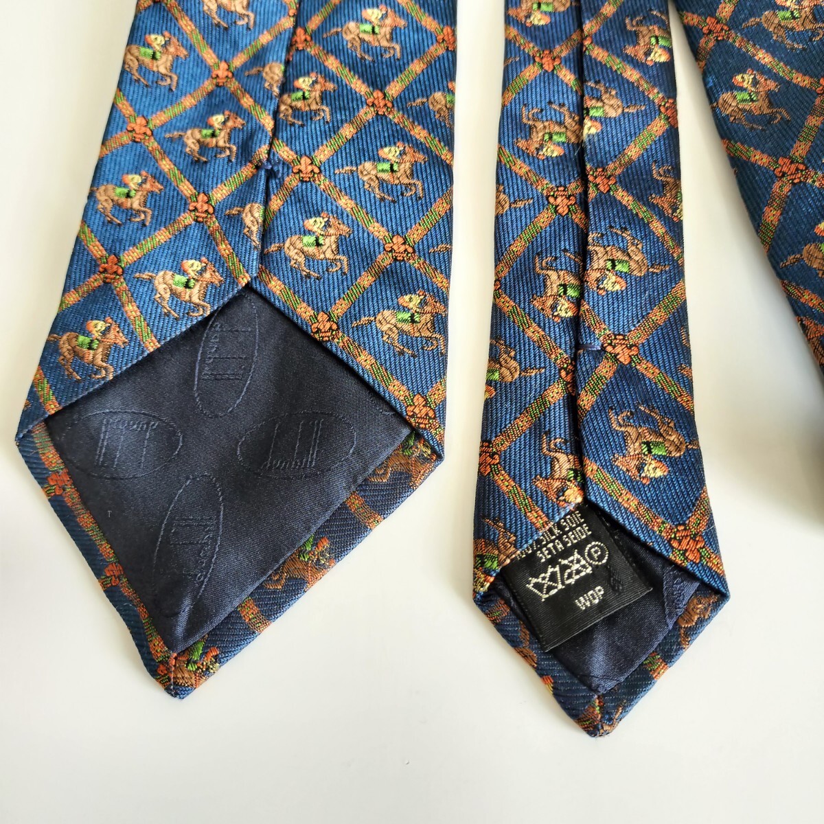 紺緑茶馬人乗りチェックDロゴネクタイ