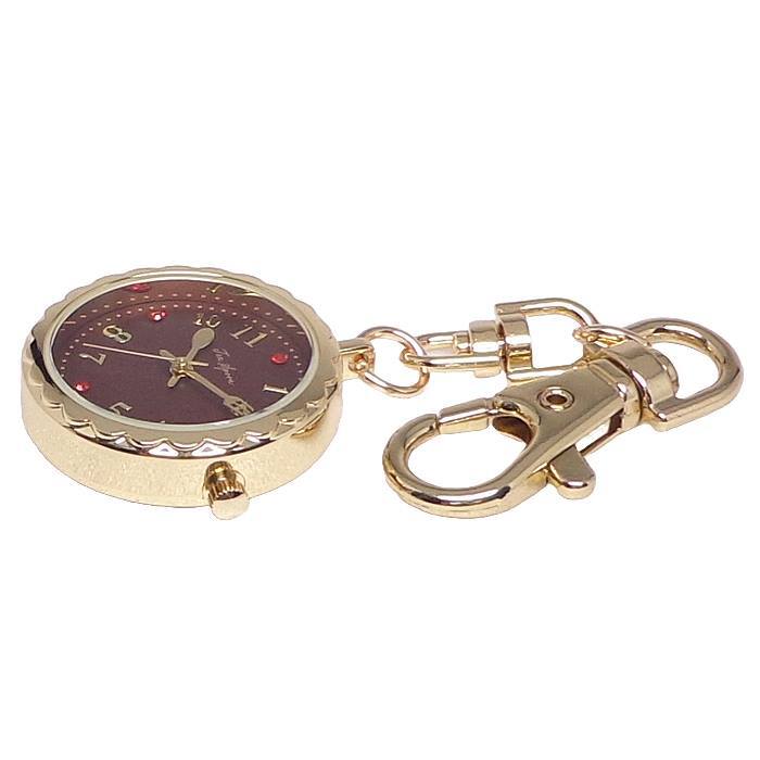 | 【ダークブラウン=チョコレート】 ・ケース・リューズ:ゴールド ・裏蓋:シルバー ・文字盤:チョコレートブラウン ・インデックス:ゴールド+レッド(ストーン) ・針:ゴールド(スプーン・フォーク) ・キーチェーン:ゴールド |