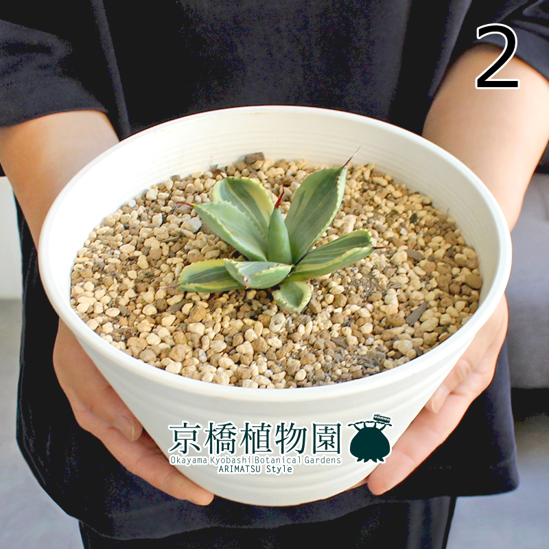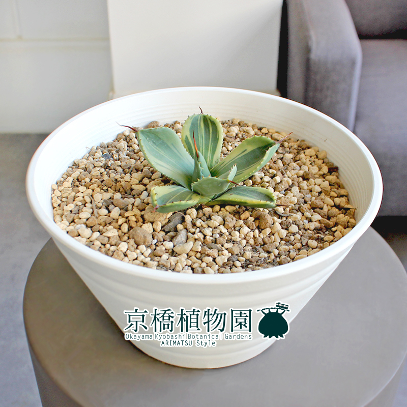 【現品】アガベ・パリー・トルンカータ ライムストリーク 7号 白セラアート鉢(2)