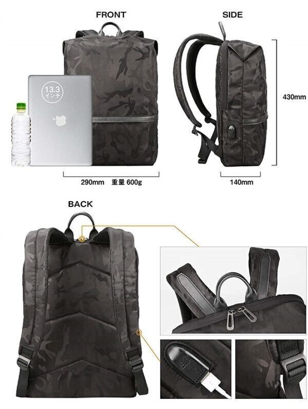 | 商品説明 | ・撥水性の高い素材を使用しながらも約600gと軽く、背負い心地も抜群に良い。 ・おしゃれなのに大容量、1泊くらいの荷物なら楽々収納出来ます。 ・便利なPC機室もあるのでノートパソコンやタブレットも安心して収納出来ます。 ・撥水素材を使用してるので多少の雨も安心 ・背面部のクッション性にこだわる事で、背負い心地の良さが大変良くなってます。 |
