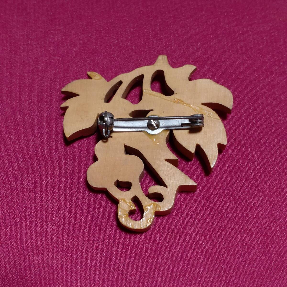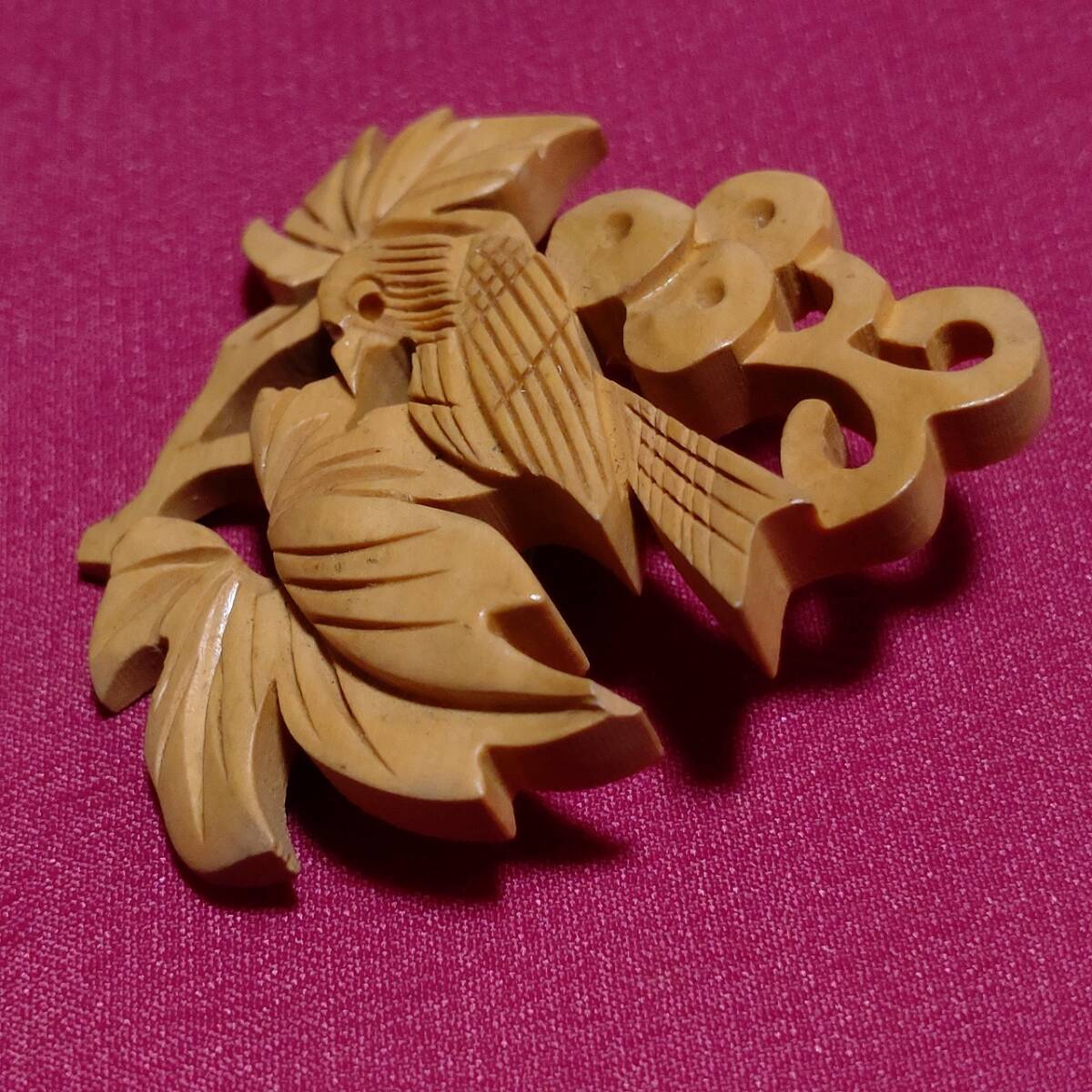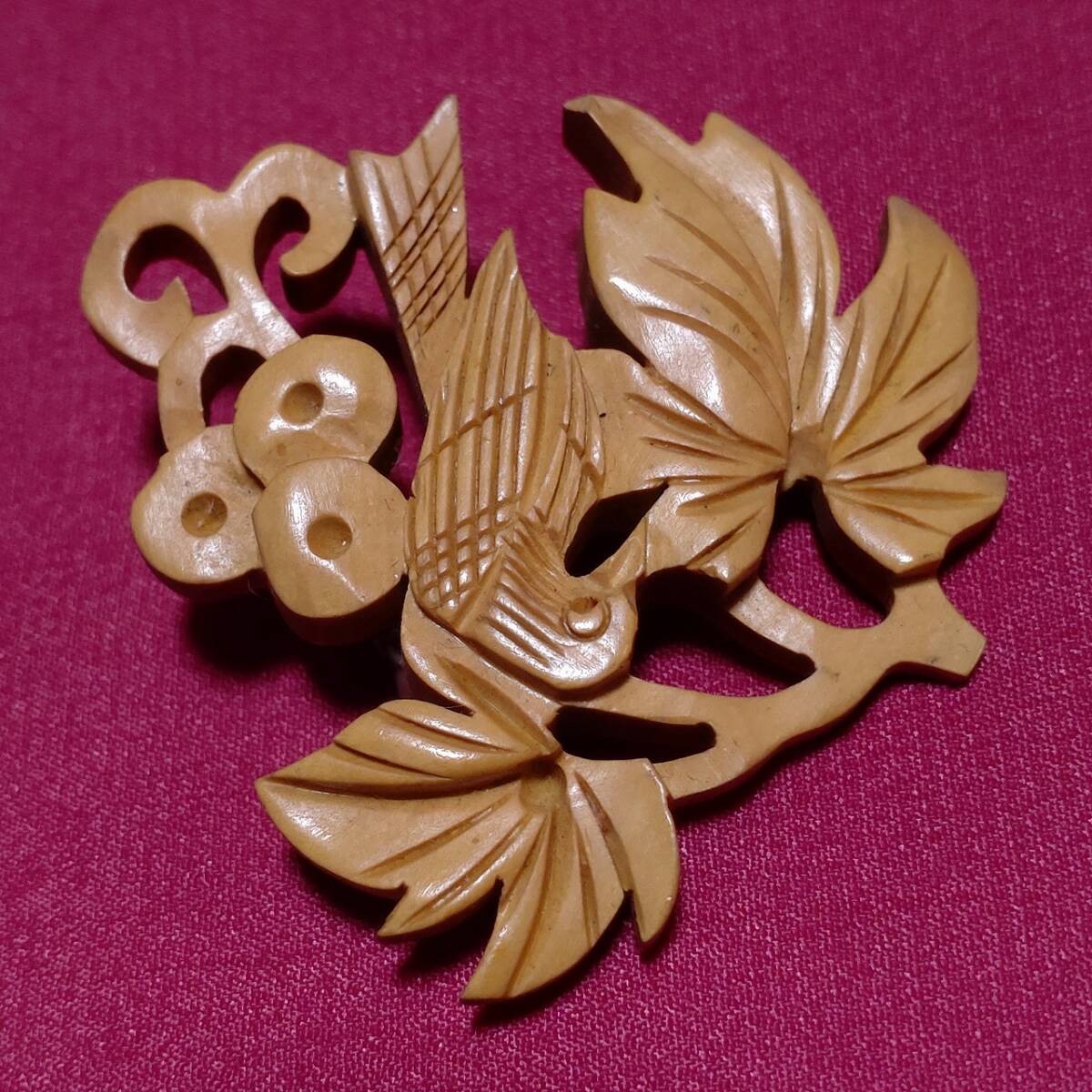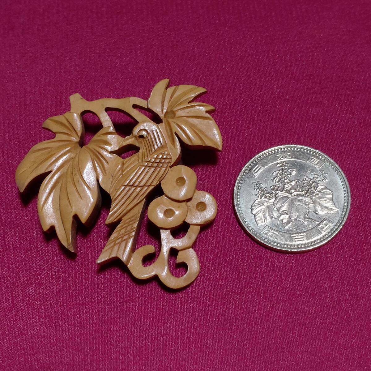 ブローチ 柘植 鳥 木の葉 つげ ツゲ 和風 小物 アクセサリー 木製 横幅約4.8cm 縦幅約5cm 【s4601】【r】