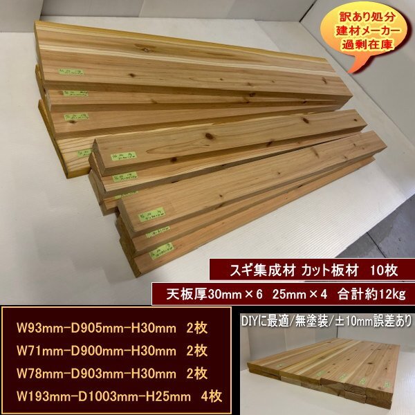 | タイトル | スギ 集成材 杉 カット板材 10枚セット 93-905-30mm×2 71-900-30mm×2 78-903-30mm×2 193-1003-25mm×4 約12kg 無塗装 送料無料 訳あり処分 軽い DIY向き |