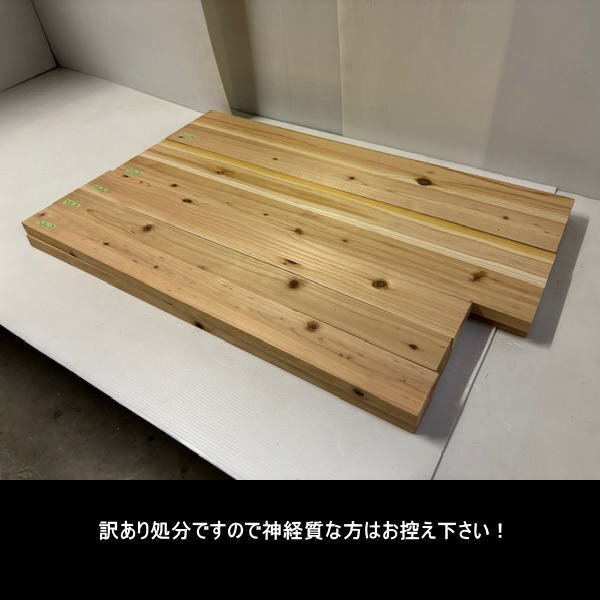 ■サイズ-1 W93mm×D905mm×H30mm 2枚 ■サイズ-2 W71mm×D900mm×H30mm 2枚 ■サイズ-3 W78mm×D903mm×H30mm 2枚 ■サイズ-4 W193mm×D1003mm×H25mm 4枚 合計 約12kg ※サイズは細かく明記しておりますが参考目安でお考え下さい。 ※材質は同じですが、模様・節・柄などが異なる場合があります。 ※端材ですので小さなかけや、大きな節も含まれております。 ■材質 スギ集成材 杉集成材 ■用途 装飾 飾り棚 加工 DIY 板材 ■生産工場 岐阜県のメーカーより提供 ■カラー 無塗装 ■完成品 玄関渡し ■施工に関する責任は一切お受け出来かねます。 ■訳あり品にご理解のないお客様はご遠慮願います。 |